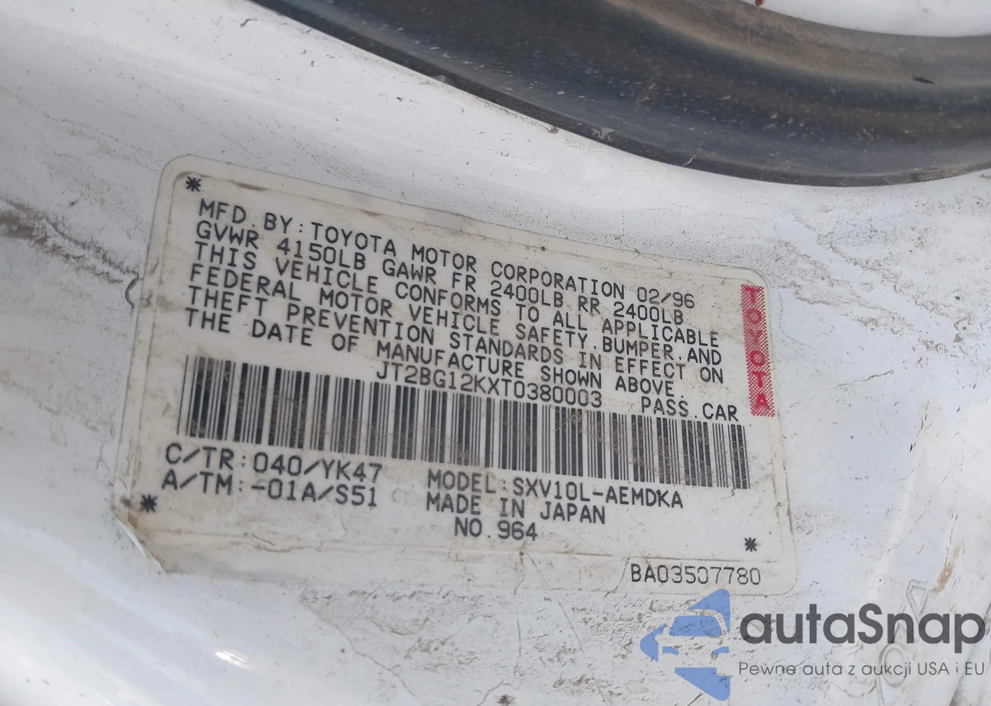 LOT: 42831918 VIN: JT2BG12KXT0380003