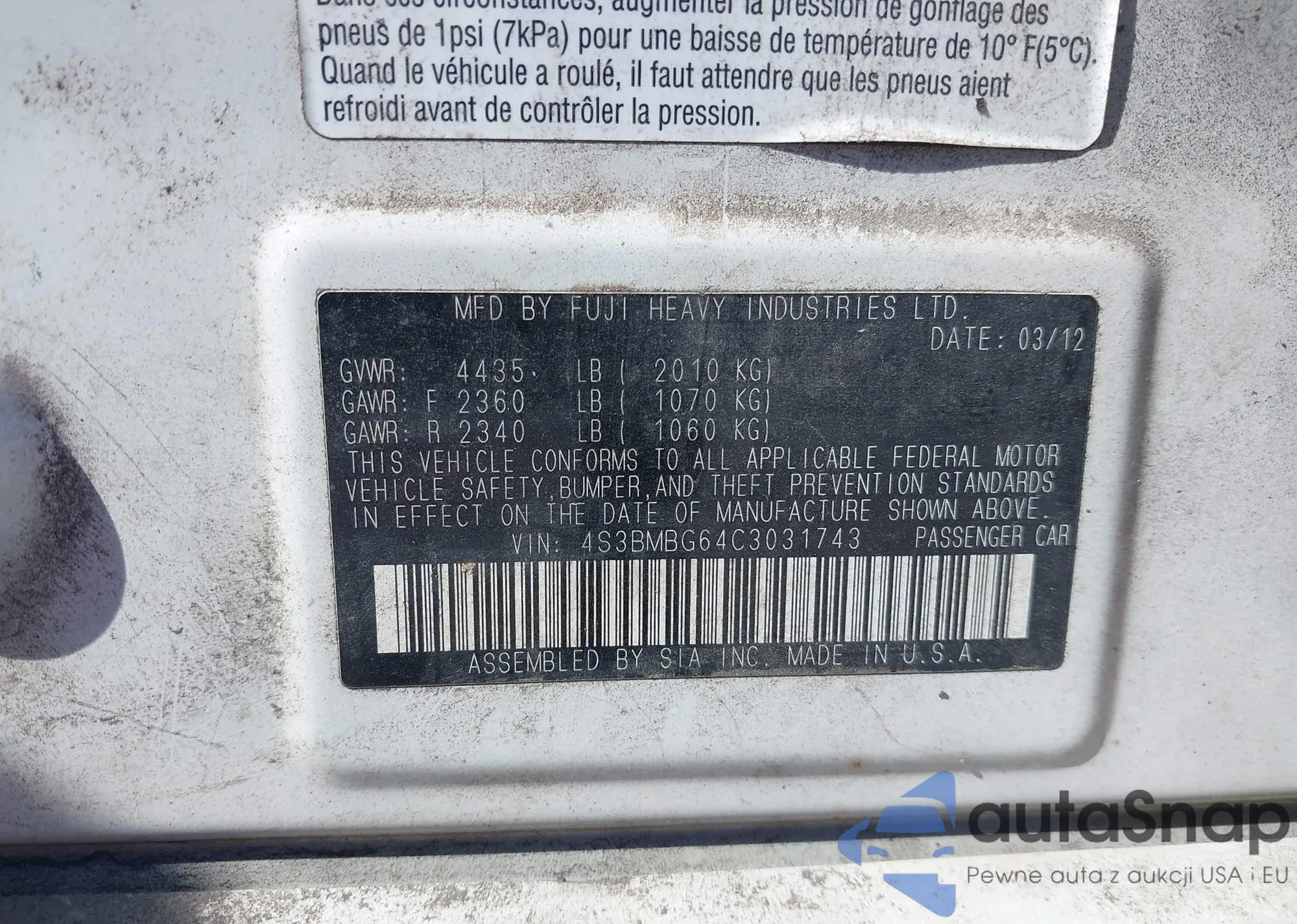 LOT: 43420467 VIN: JA4AR3AU5HZ067563