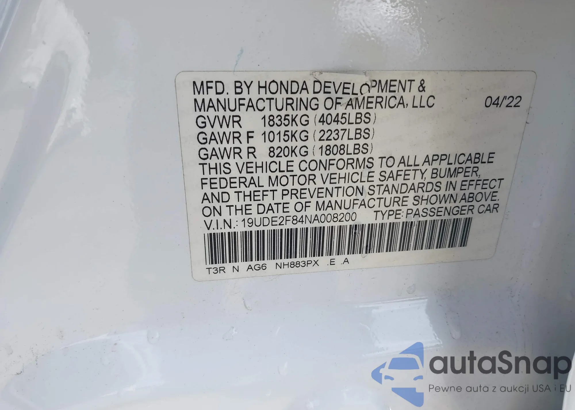 • VIN 19UDE2F84NA008200