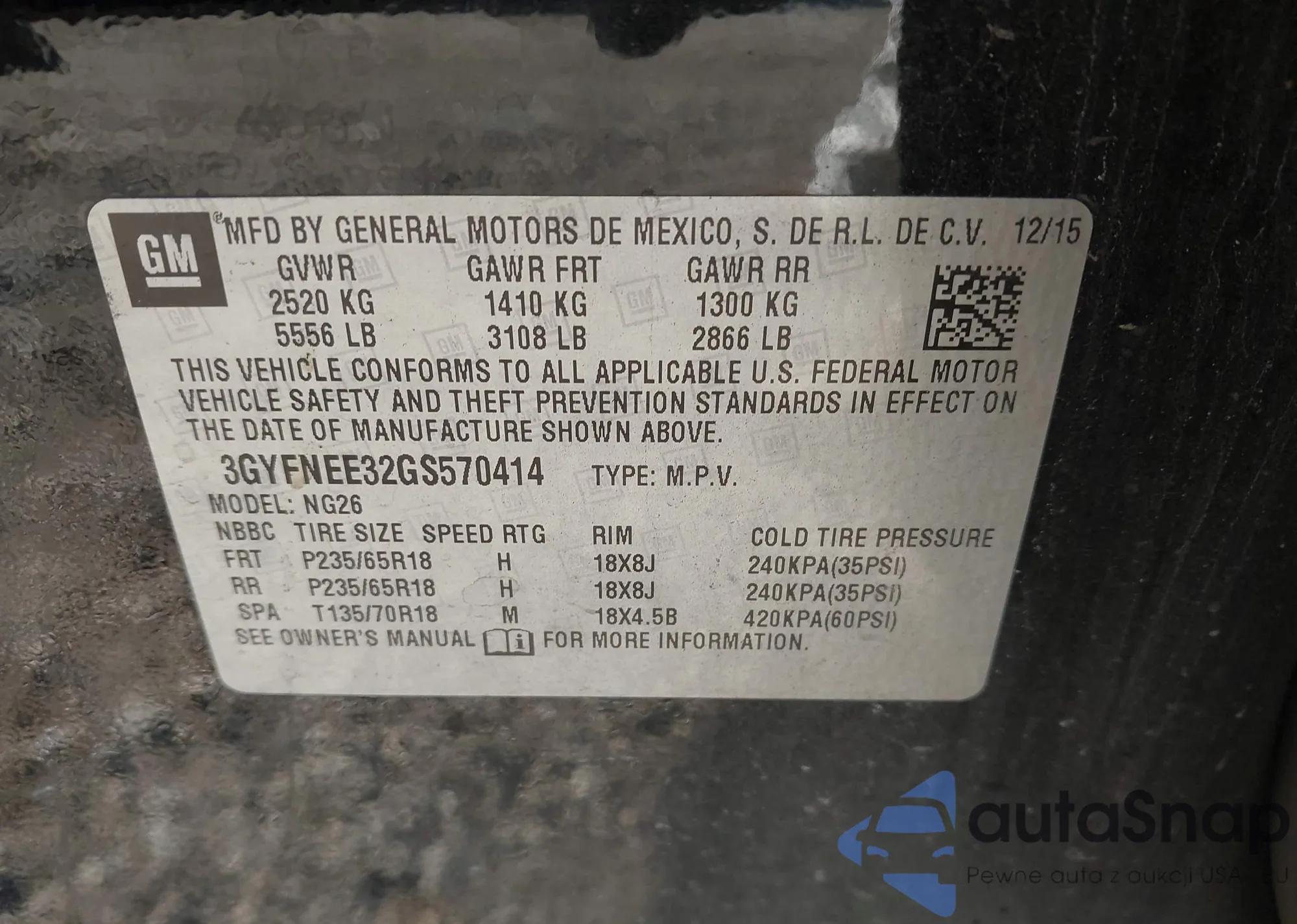 • VIN 3GYFNEE32GS570414