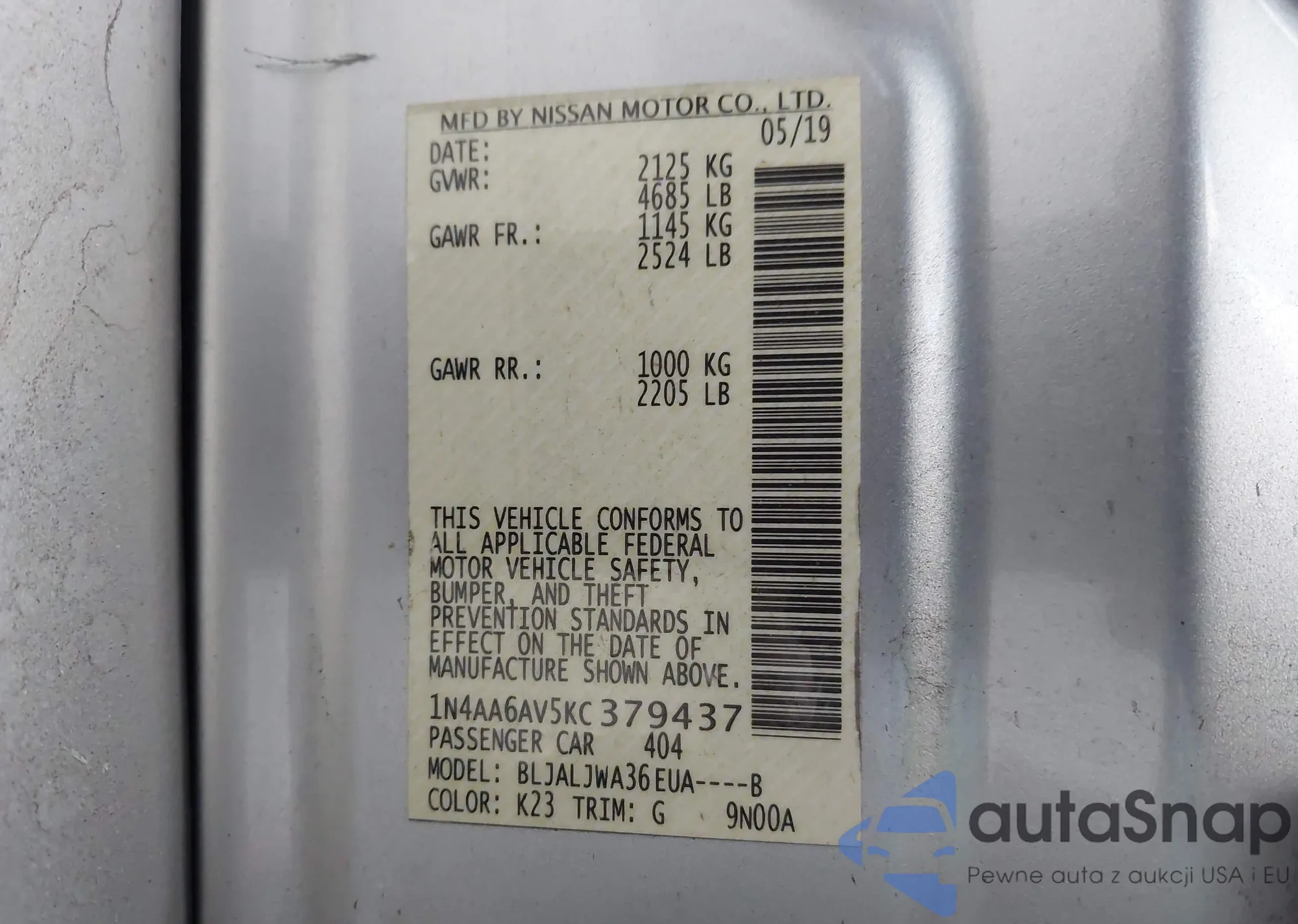 LOT: 43266347 VIN: 1N4AA6FV4MC516122