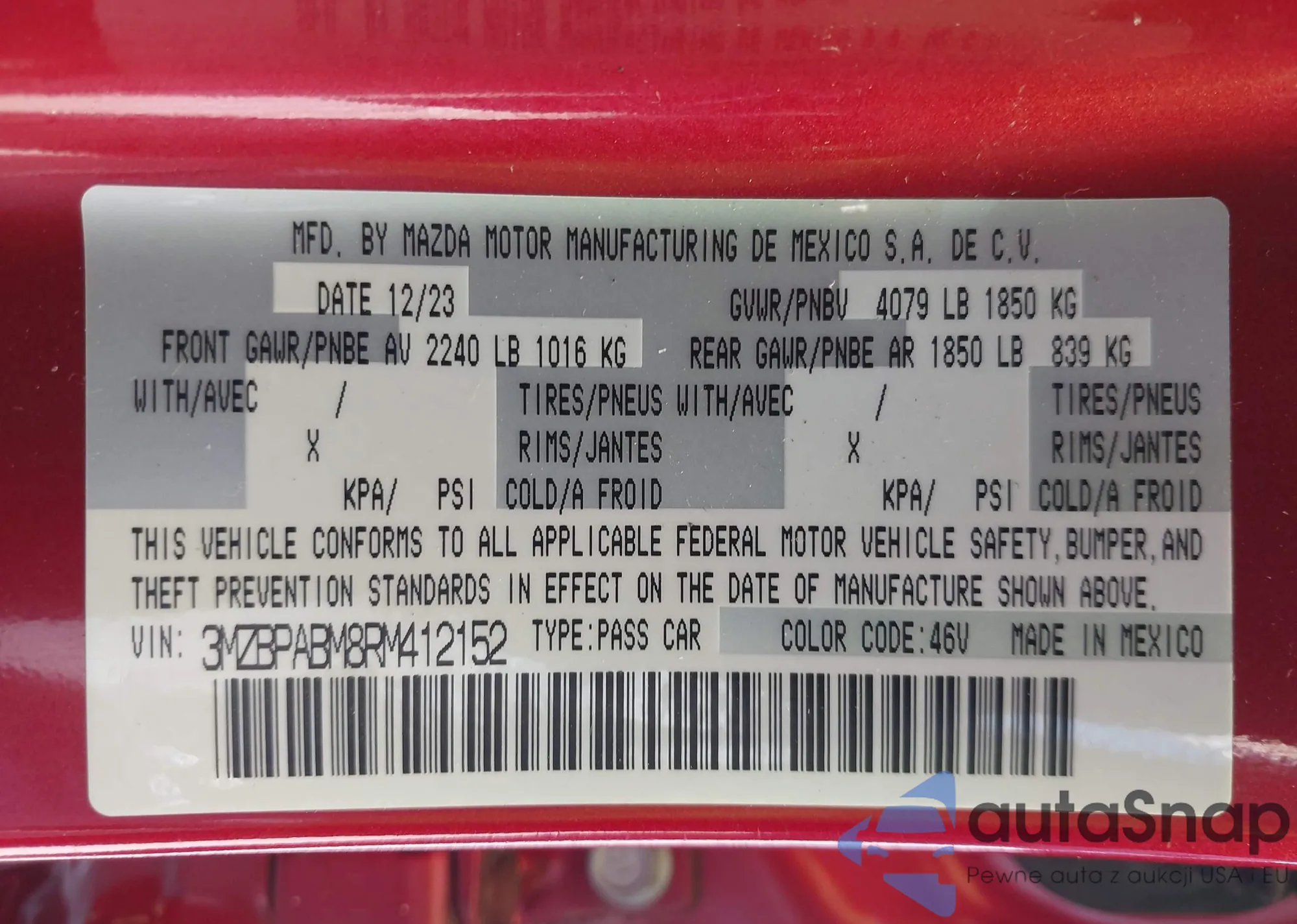 LOT: 43183961 VIN: 3MZBPABM8RM412152