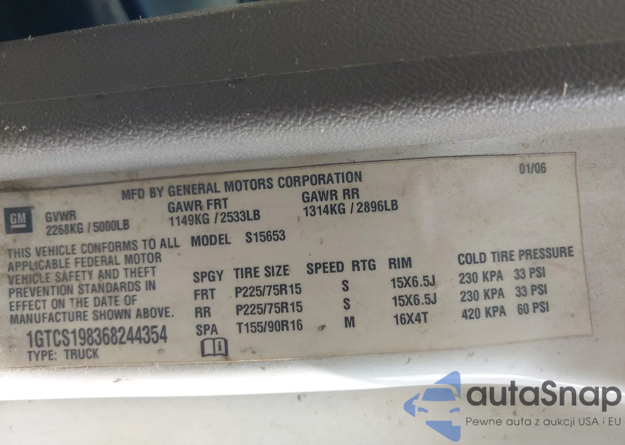 • VIN 1GTCS198368244354