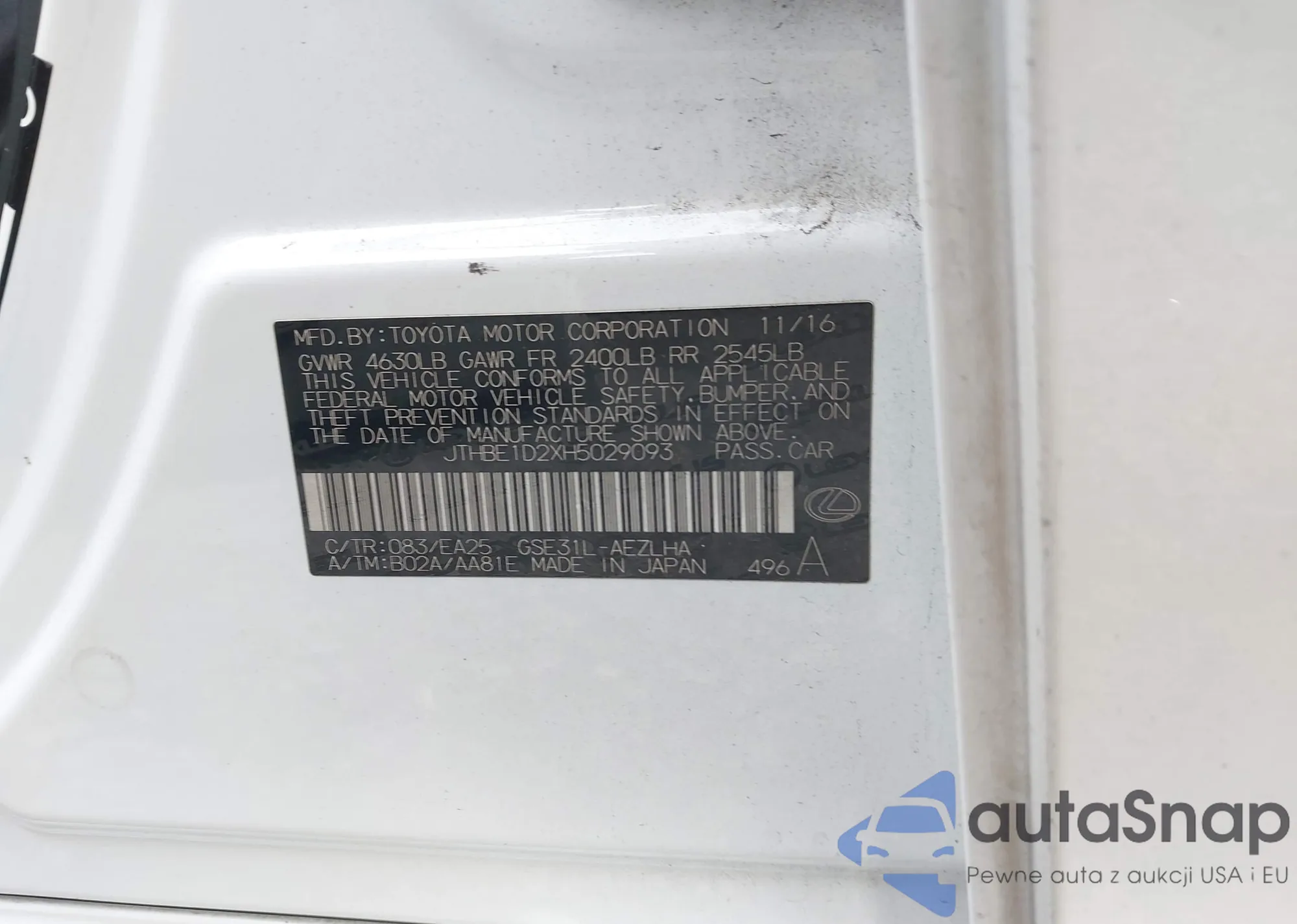 LOT: 43555598 VIN: 2T3ZFREV9GW245352