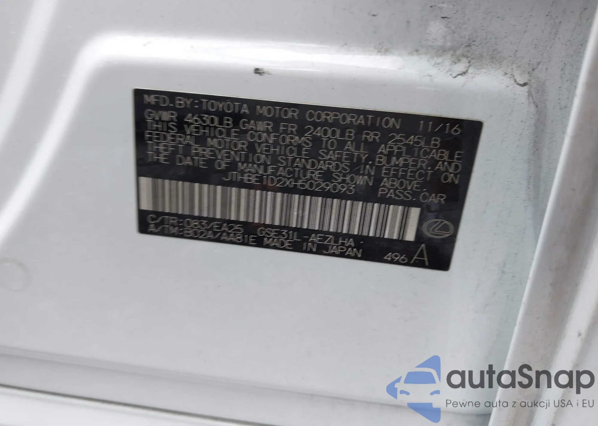 LOT: 43462878 VIN: 5J6TF2H59AL016876