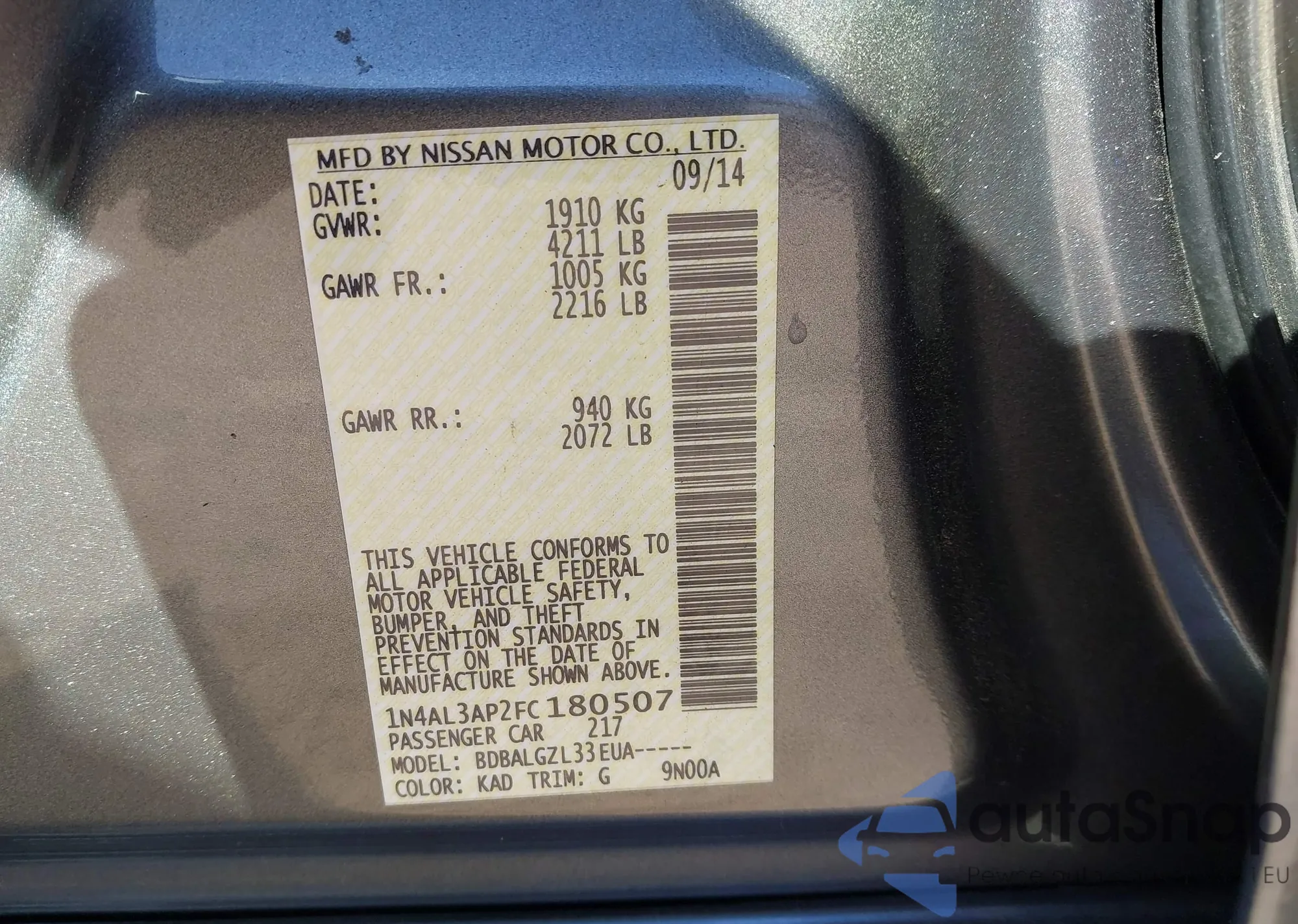 LOT: 43636972 VIN: 1N4AL3AP2FC180507