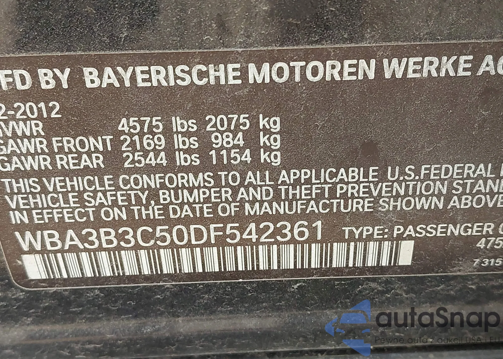 • VIN WBA3B3C50DF542361