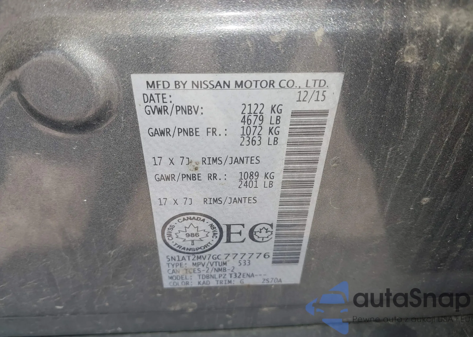 • VIN 5N1AT2MV0EC834784