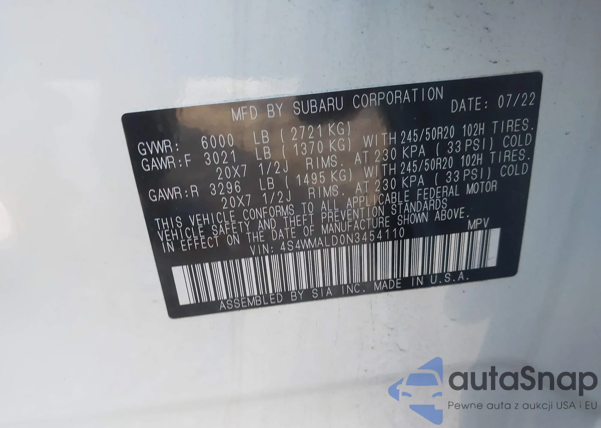 • VIN 4S4WMALD0N3454110