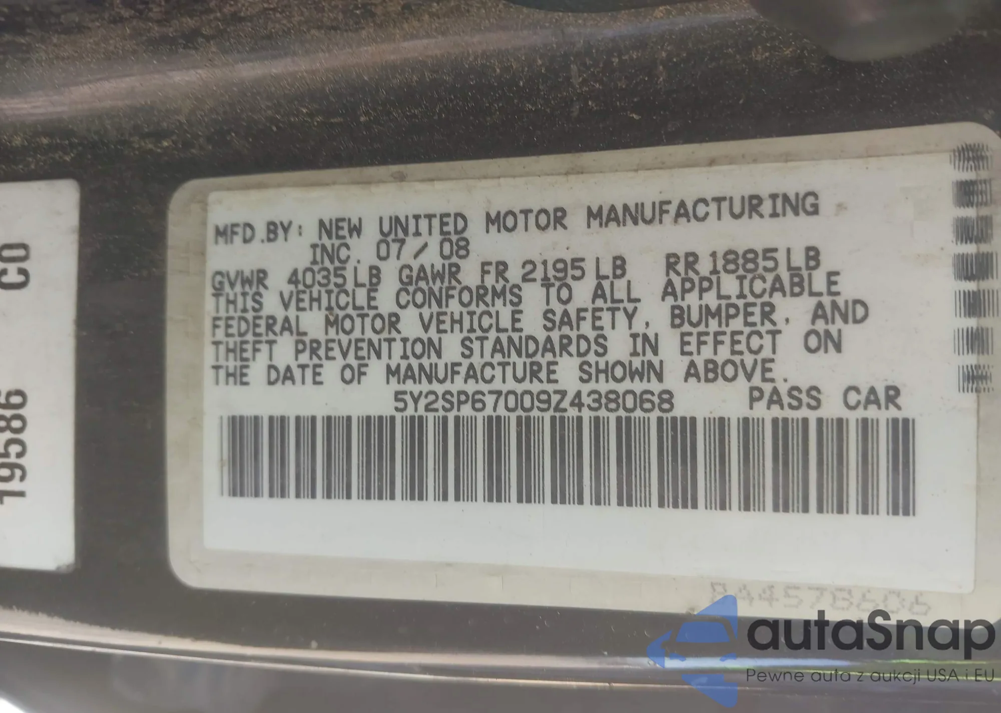 LOT: 43555013 VIN: 19UUA86519A020945