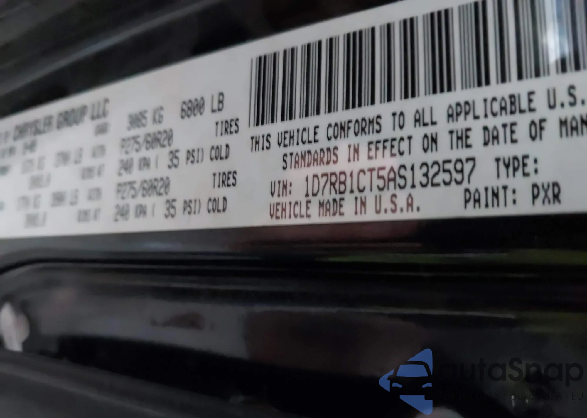 • VIN 1C3CDFAA3DD178418