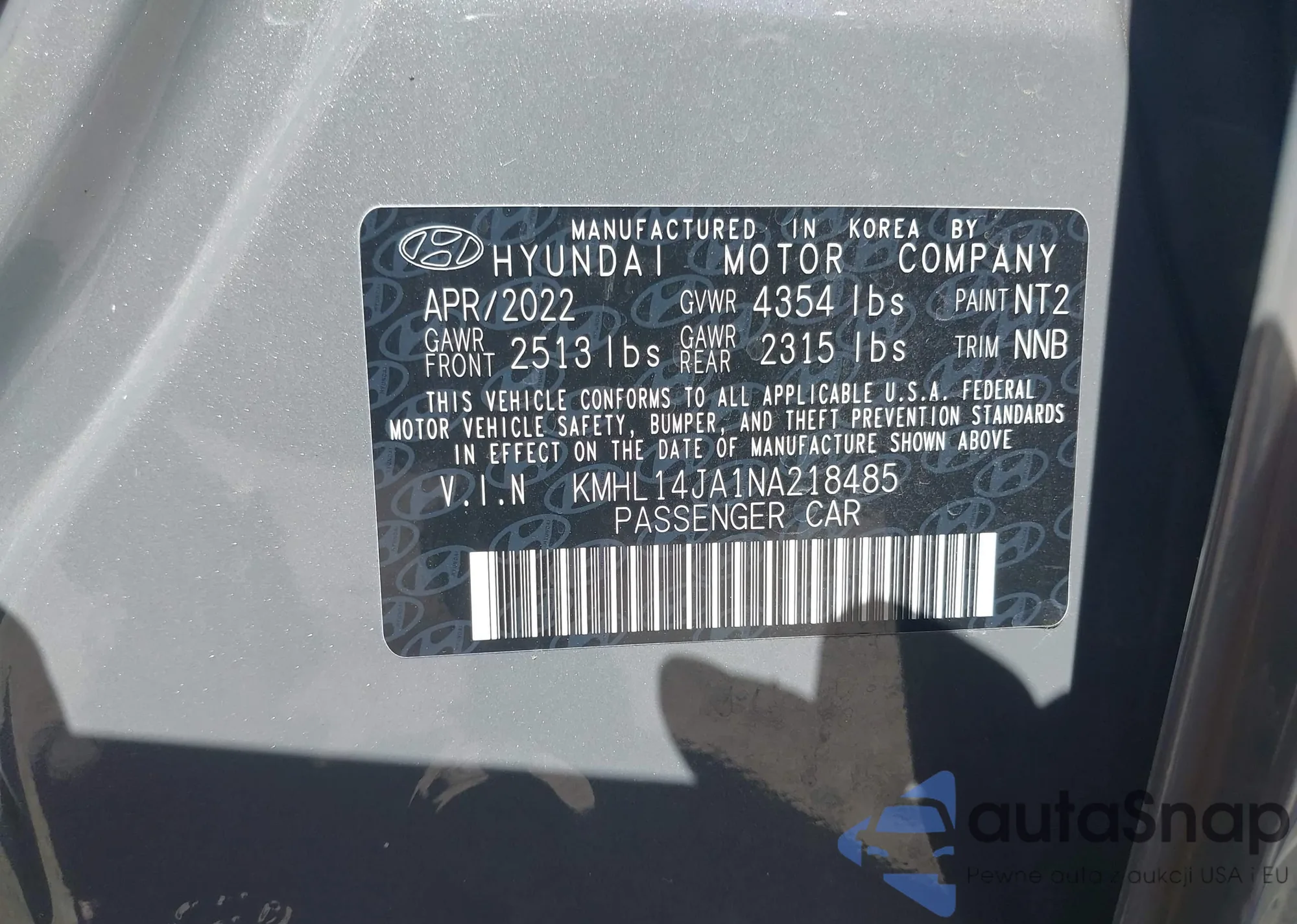 LOT: 43502967 VIN: KMHL14JA1NA218485