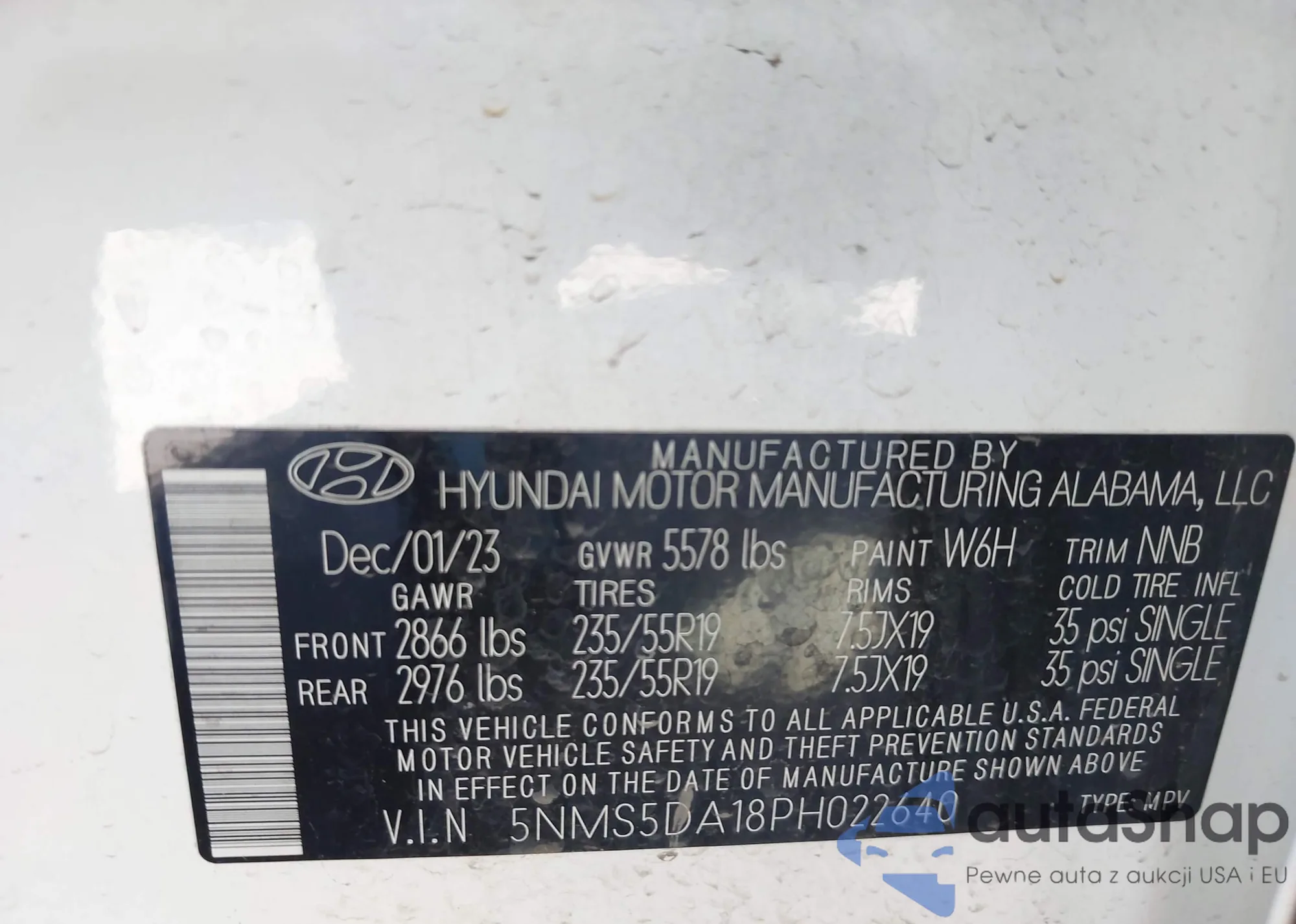 LOT: 43414442 VIN: 5NMS5DA18PH022640