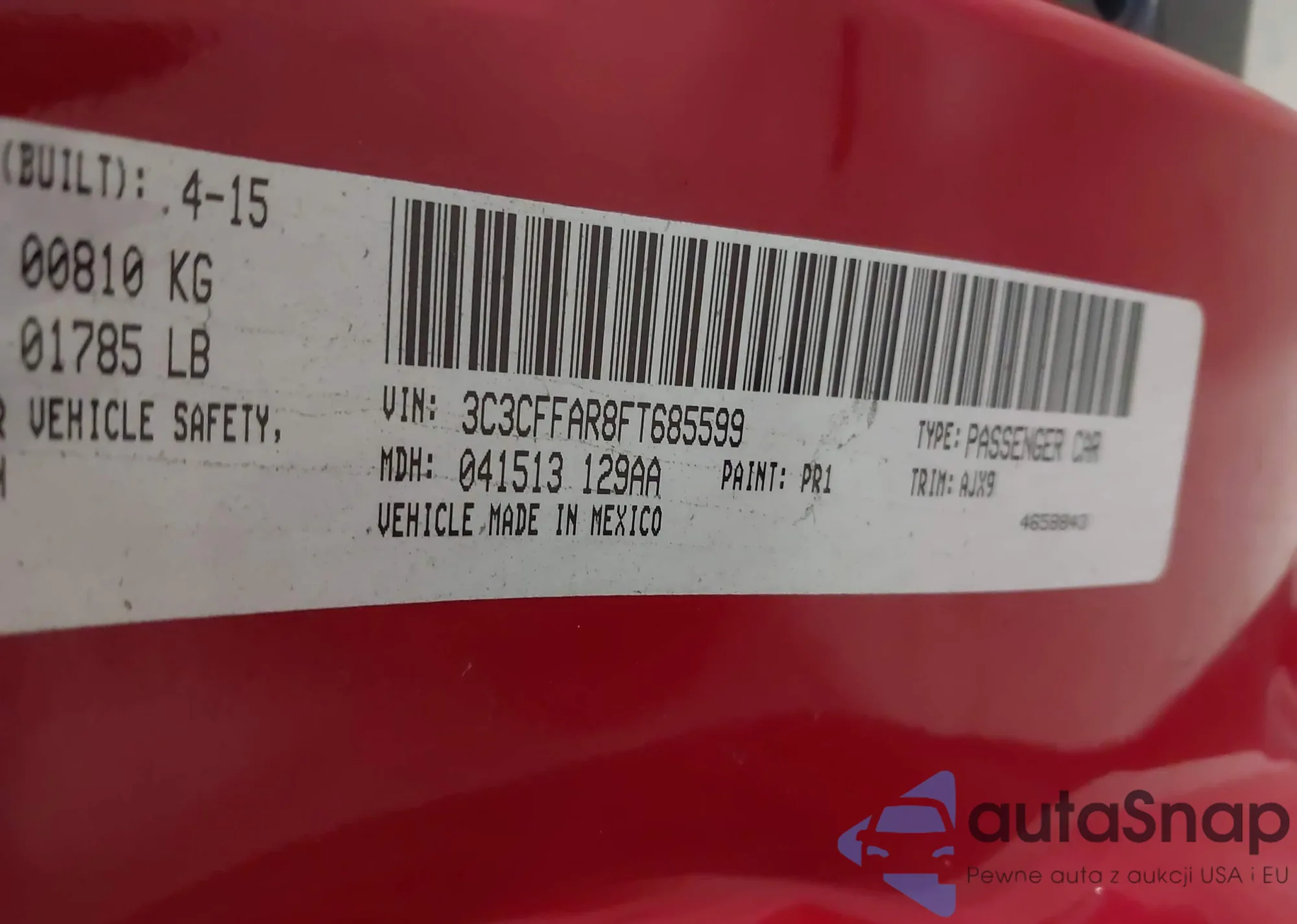 LOT: 43508178 VIN: 3C3CFFAR8FT685599