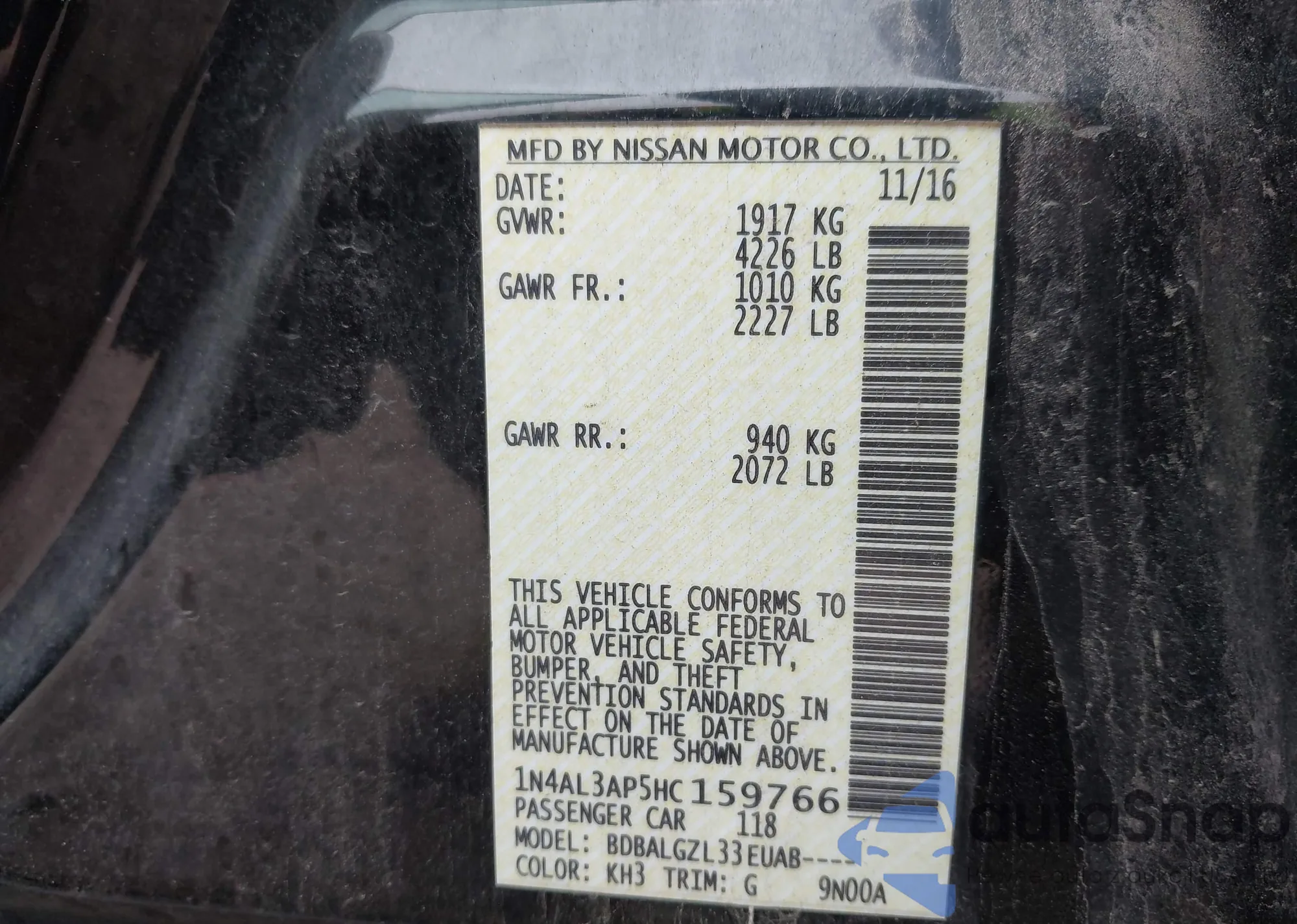 LOT: 43513579 VIN: 1N4AL3AP5HC159766