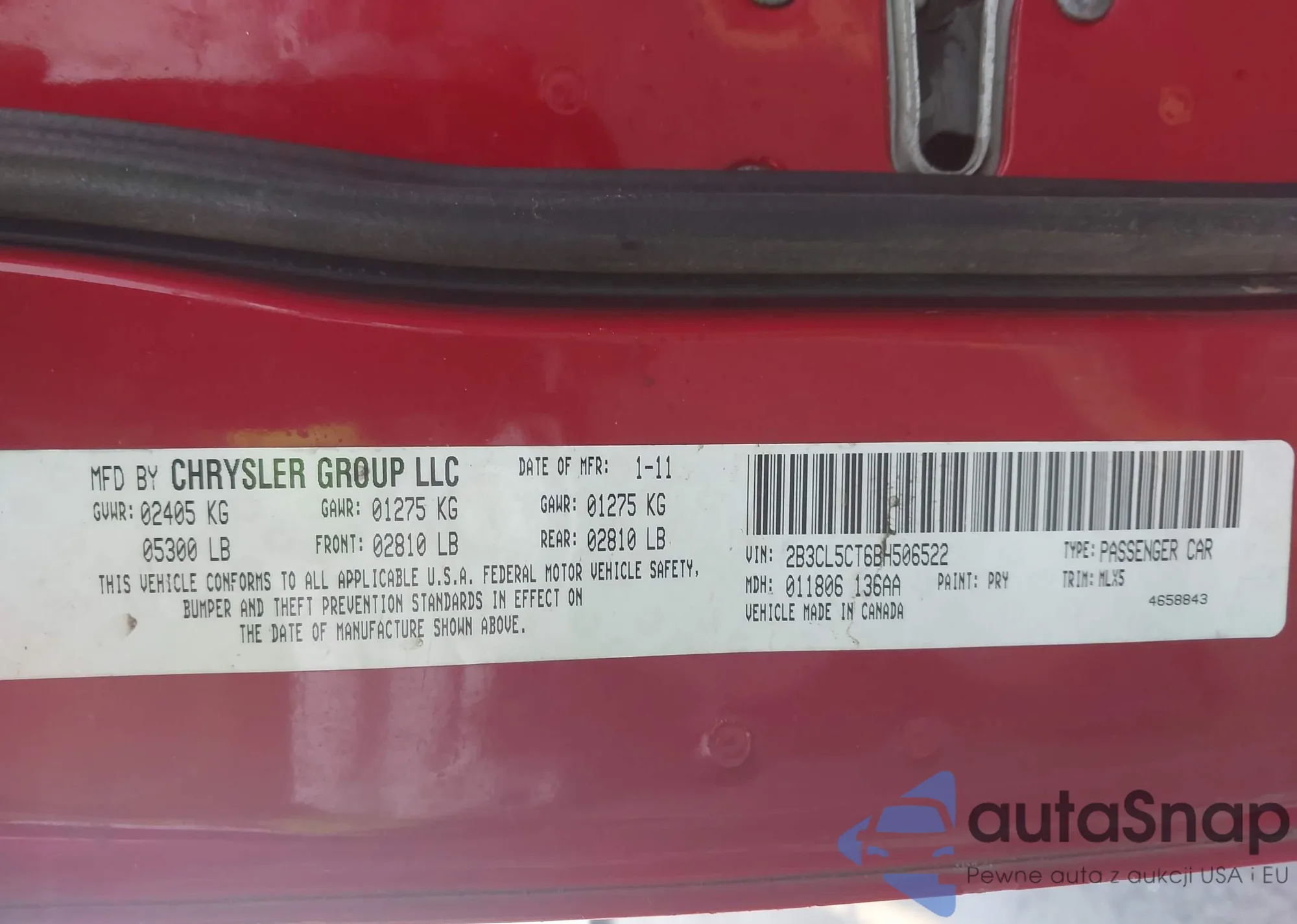 • VIN 2B3CL5CT6BH506522