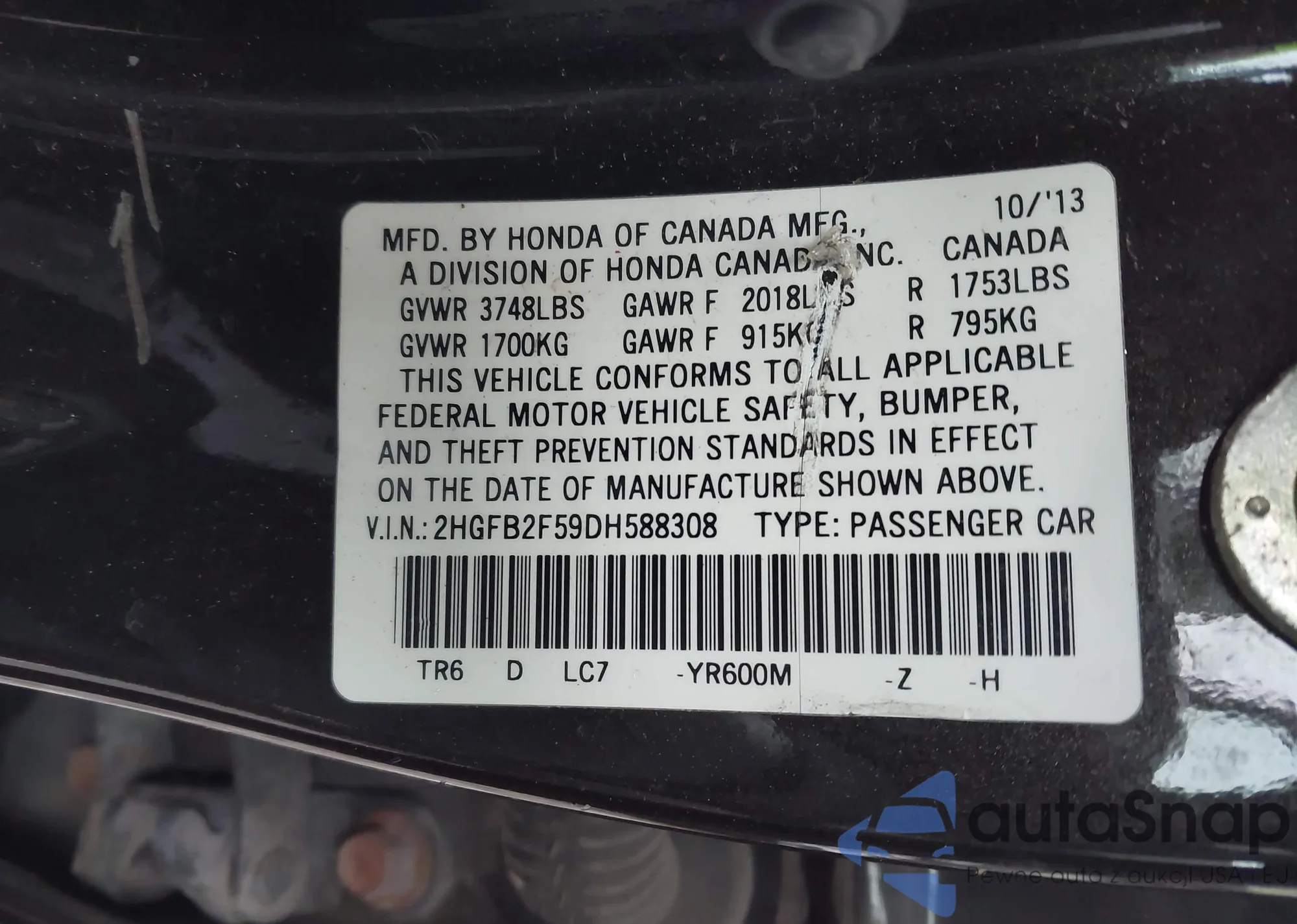 • VIN 1N4BL3AP5DC158034