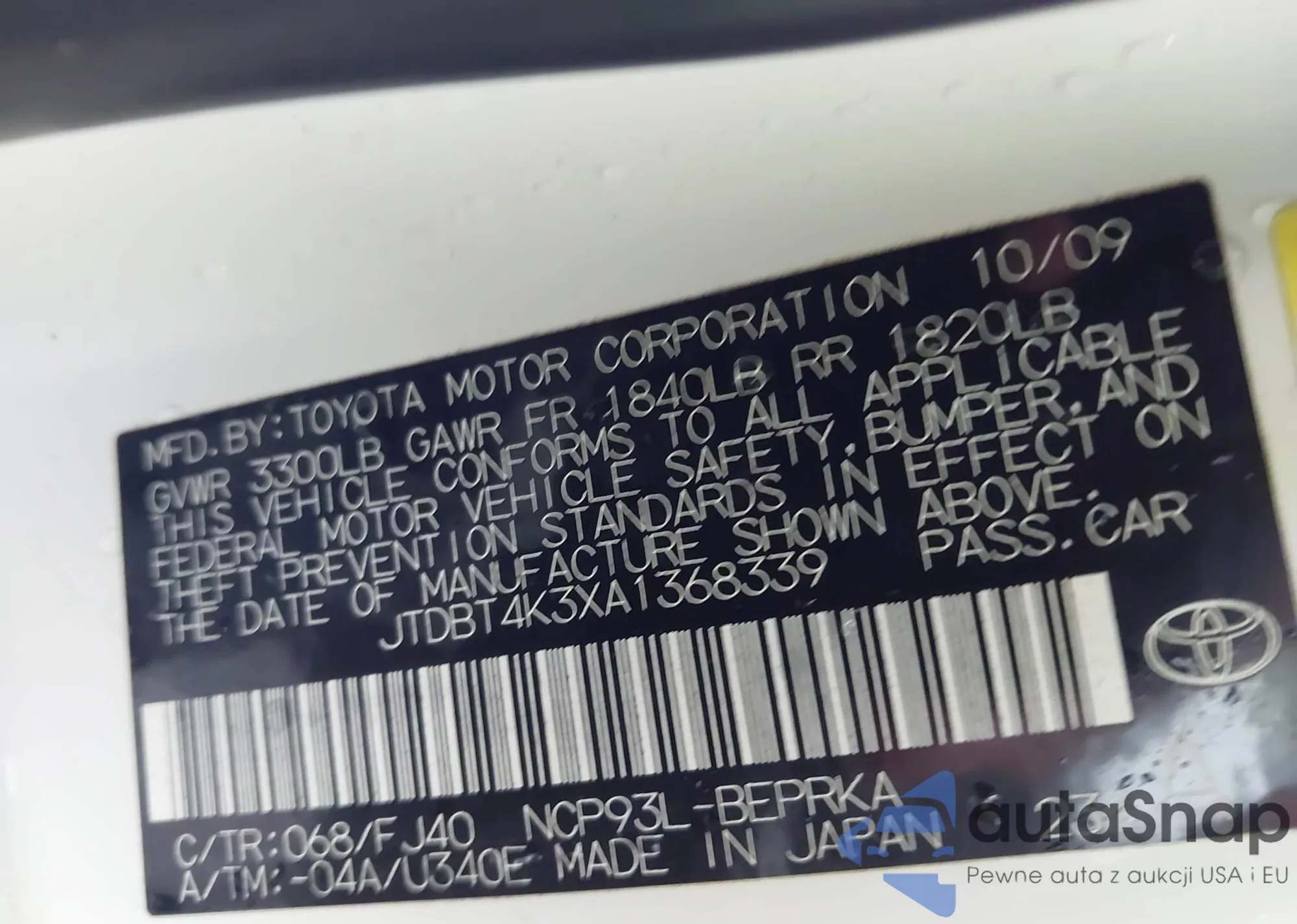 • VIN JTDBT4K3XA1368339