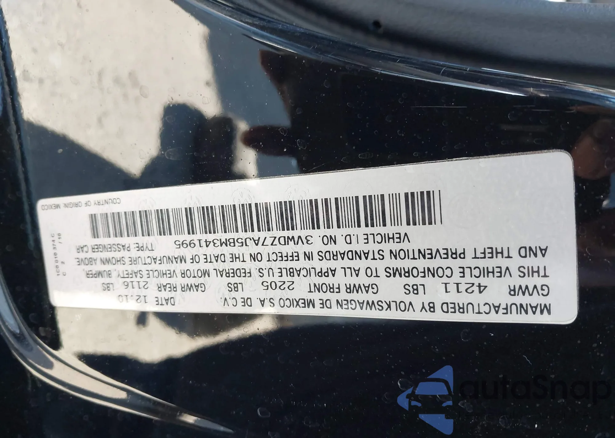 • VIN 3VWDZ7AJ5BM341995