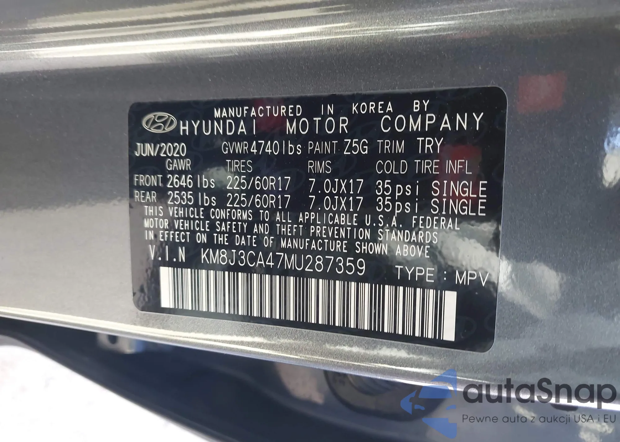 • VIN KM8J3CA47MU287359