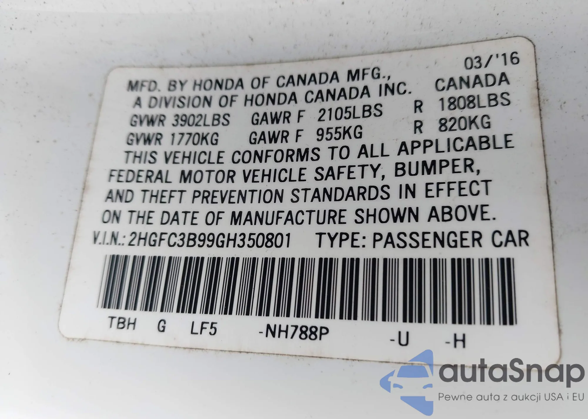 LOT: 43733209 VIN: 5NPE24AF9GH276068