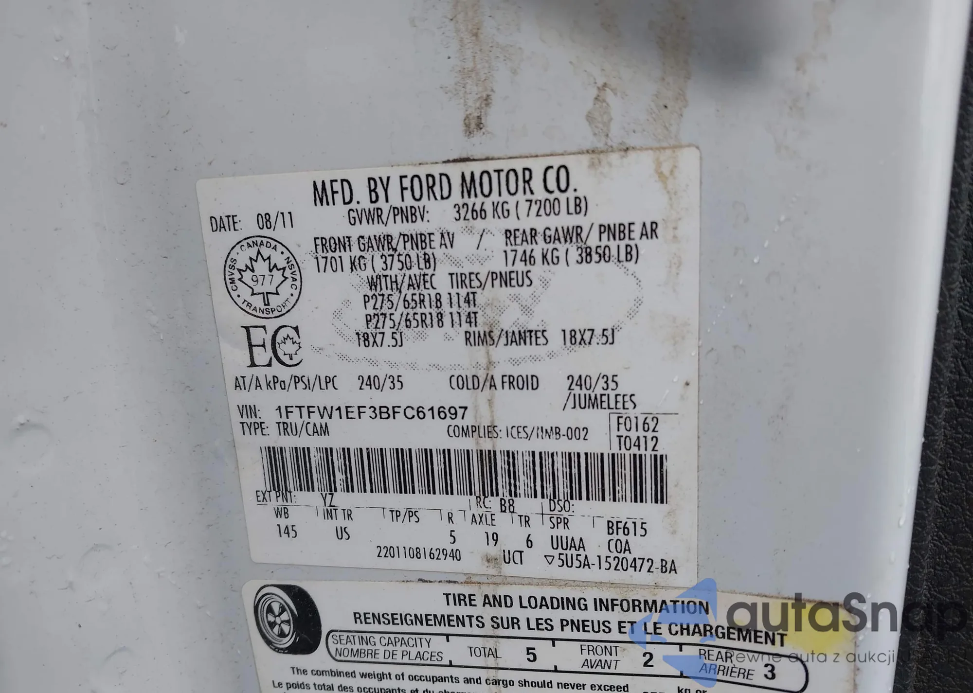 • VIN 1FTFW1EFXDKF06750
