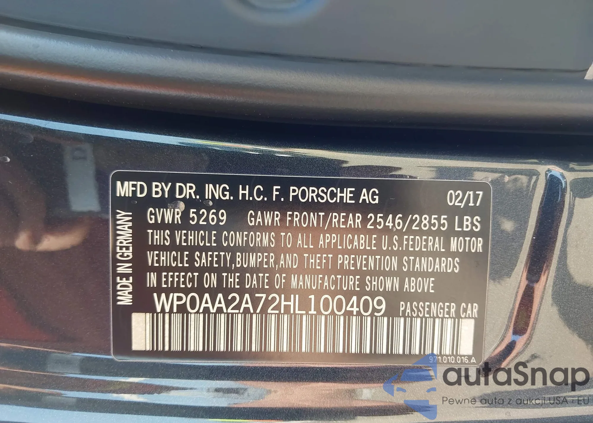 LOT: 43549549 VIN: WP0AA2A72HL100409