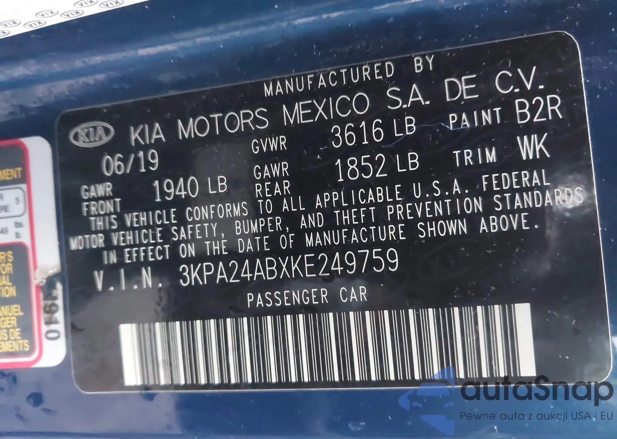 • VIN 3KPA24ABXKE249759
