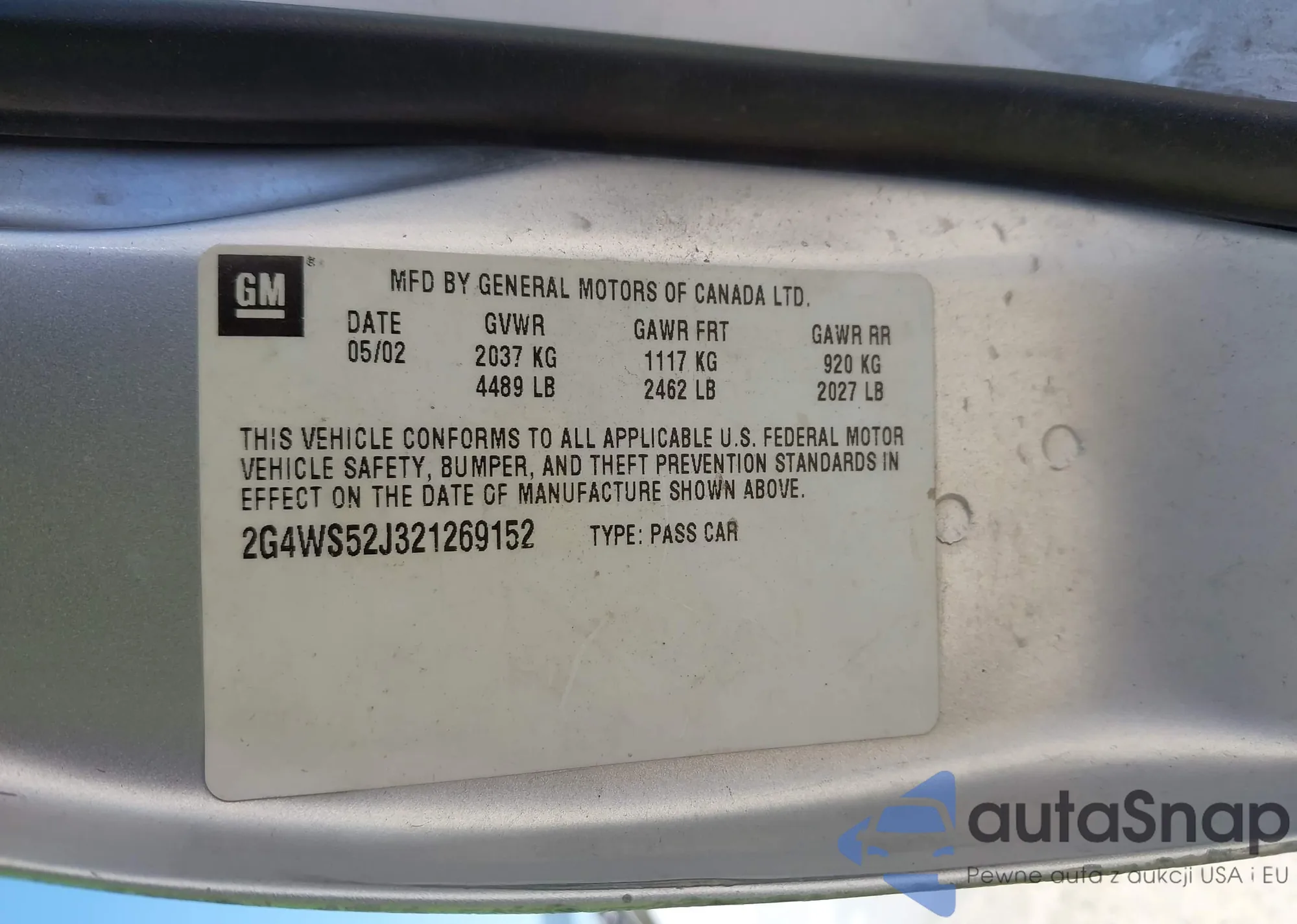 LOT: 43311604 VIN: 2G4WS52J321269152