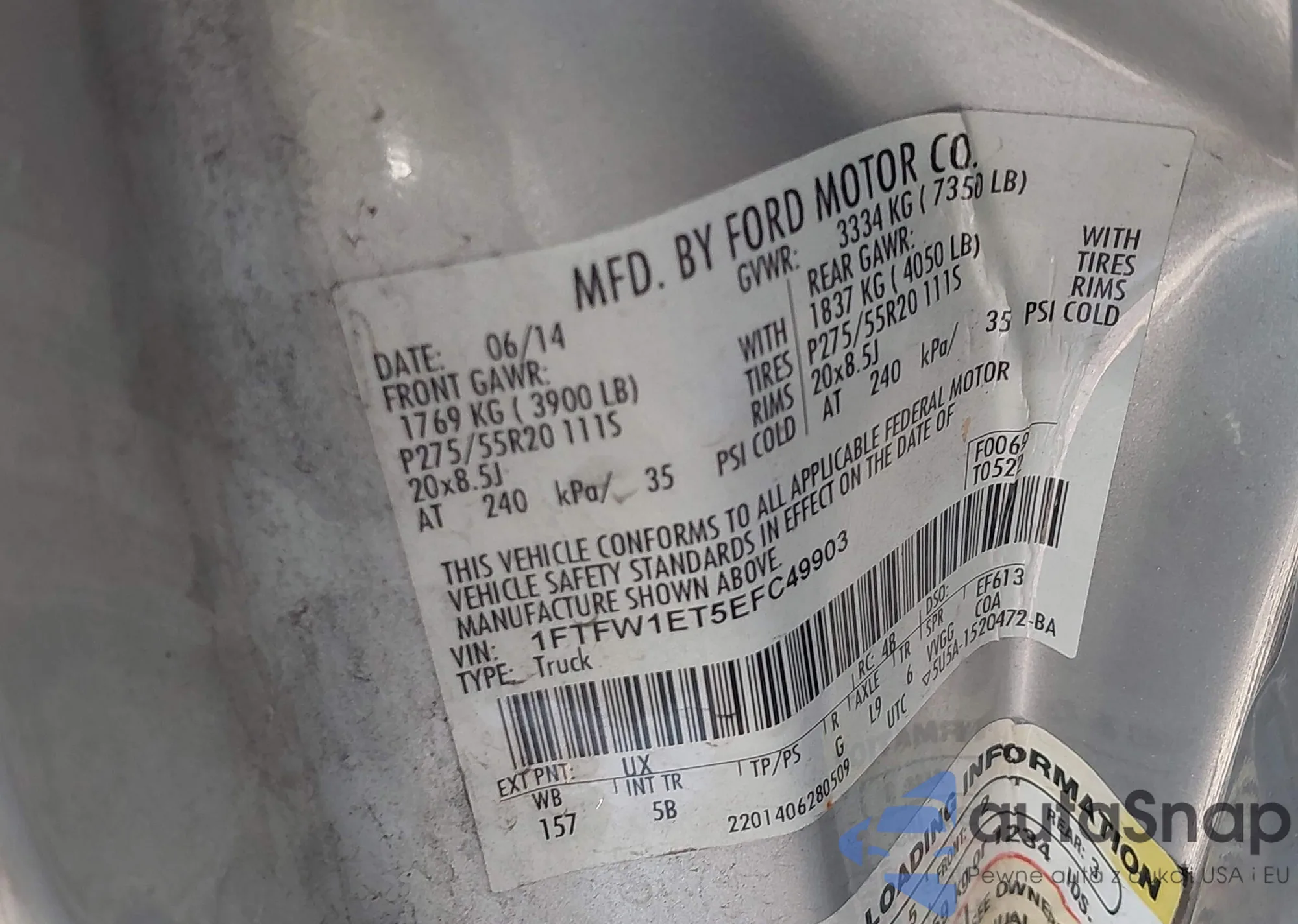 LOT: 43502360 VIN: 1N6BF0LY0KN804892
