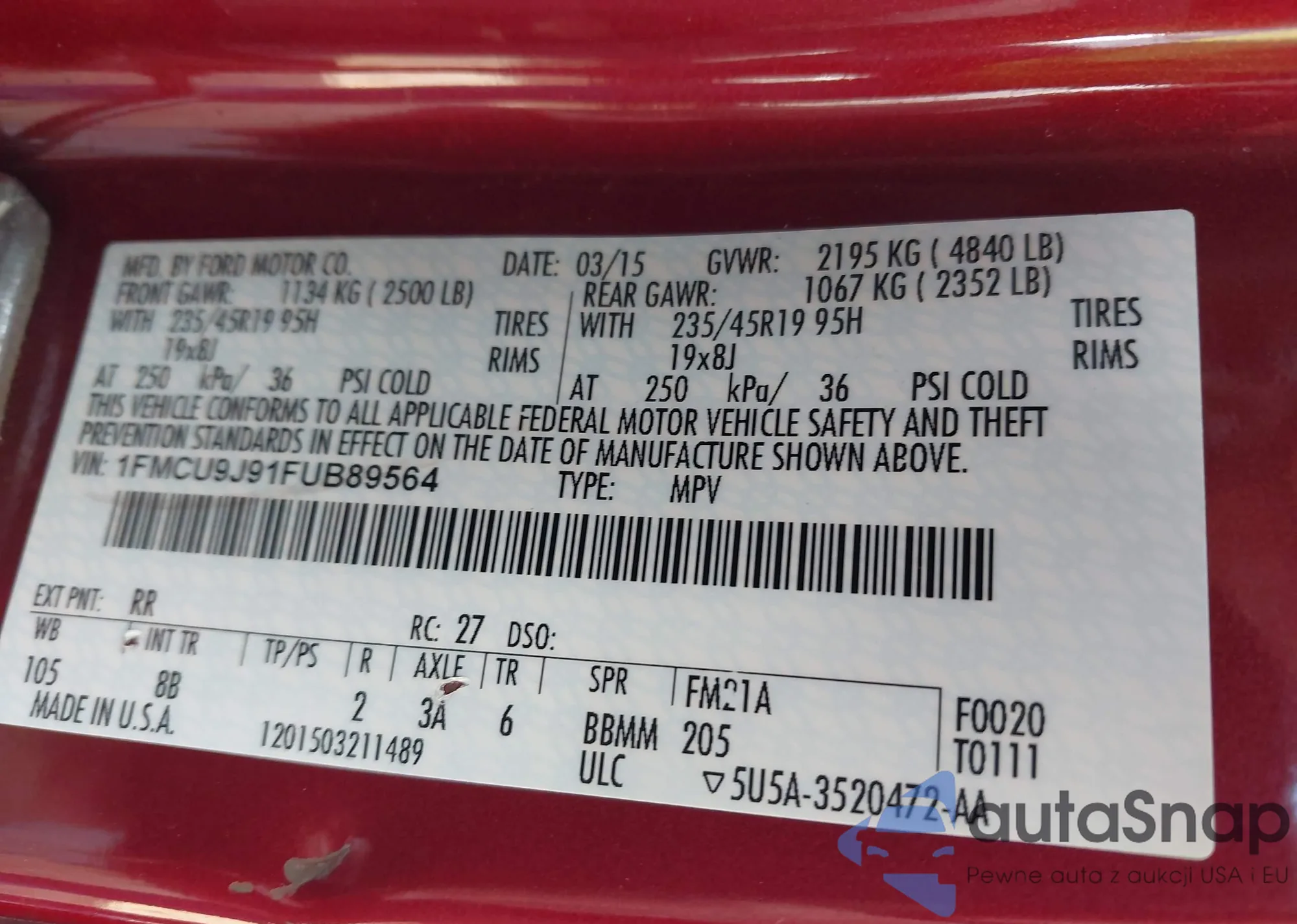 • VIN JA32X8HW9DU019364