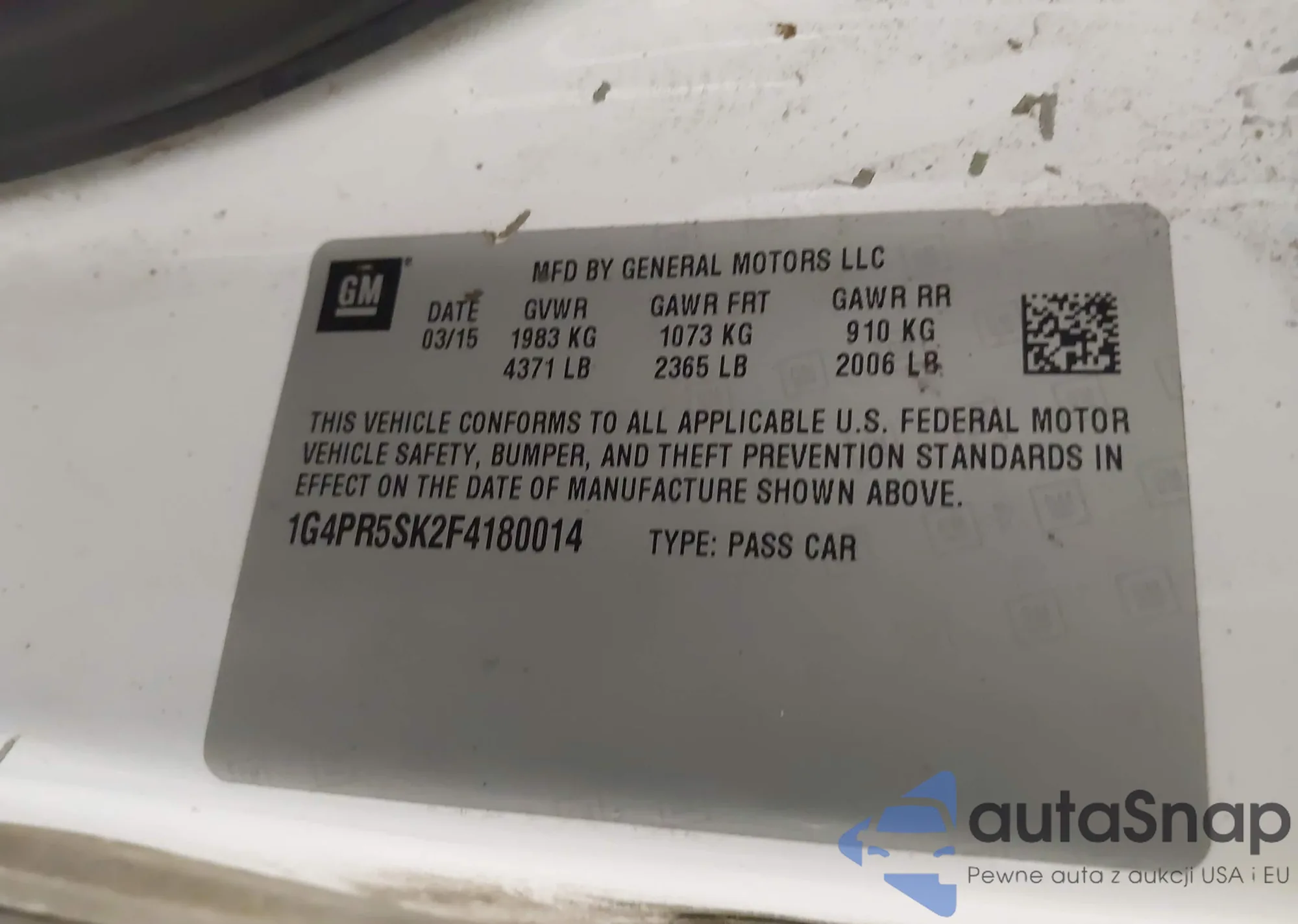 LOT: 43436805 VIN: 1G4PR5SK2F4180014