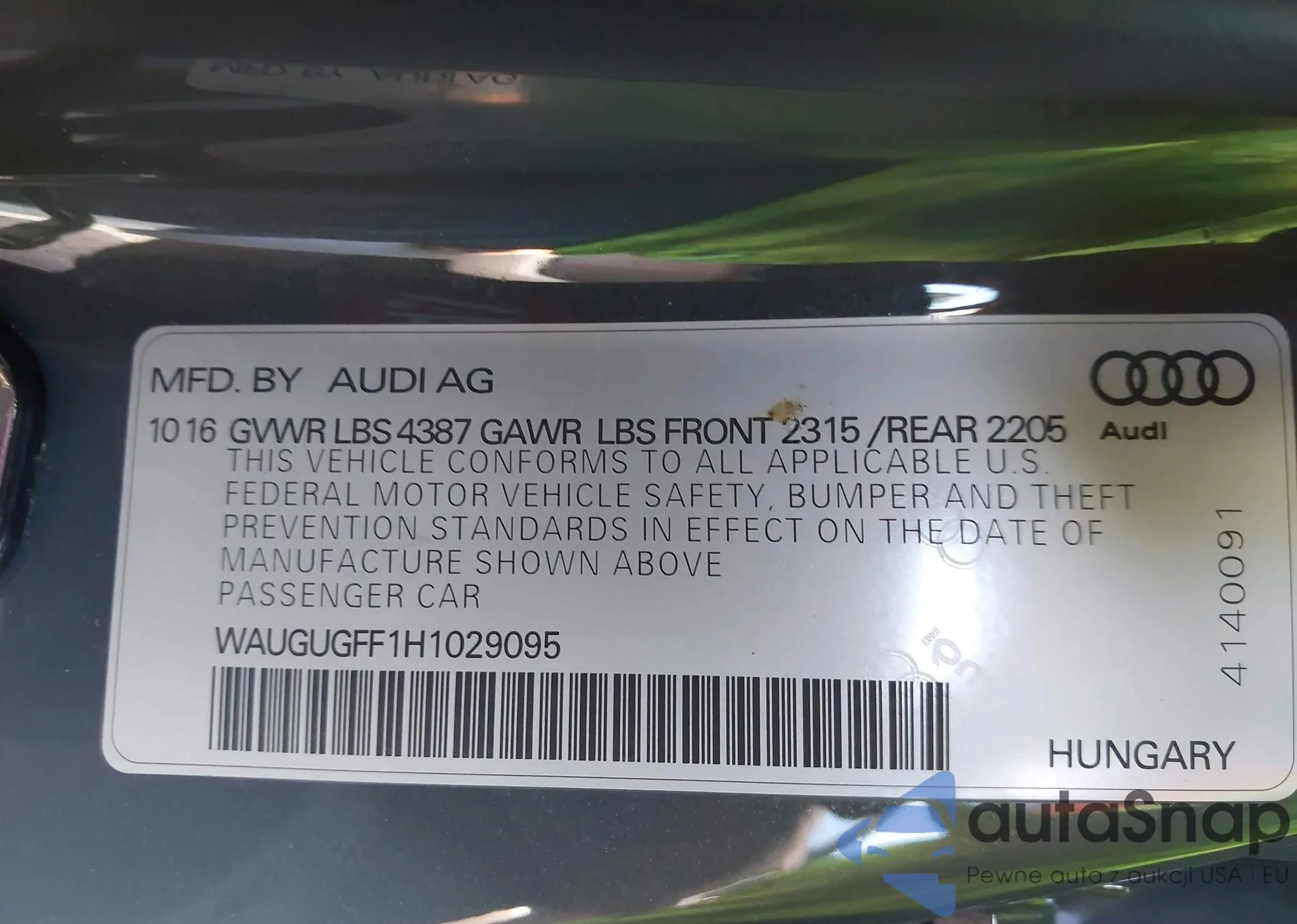 LOT: 43466141 VIN: WAUGUGFF1H1029095