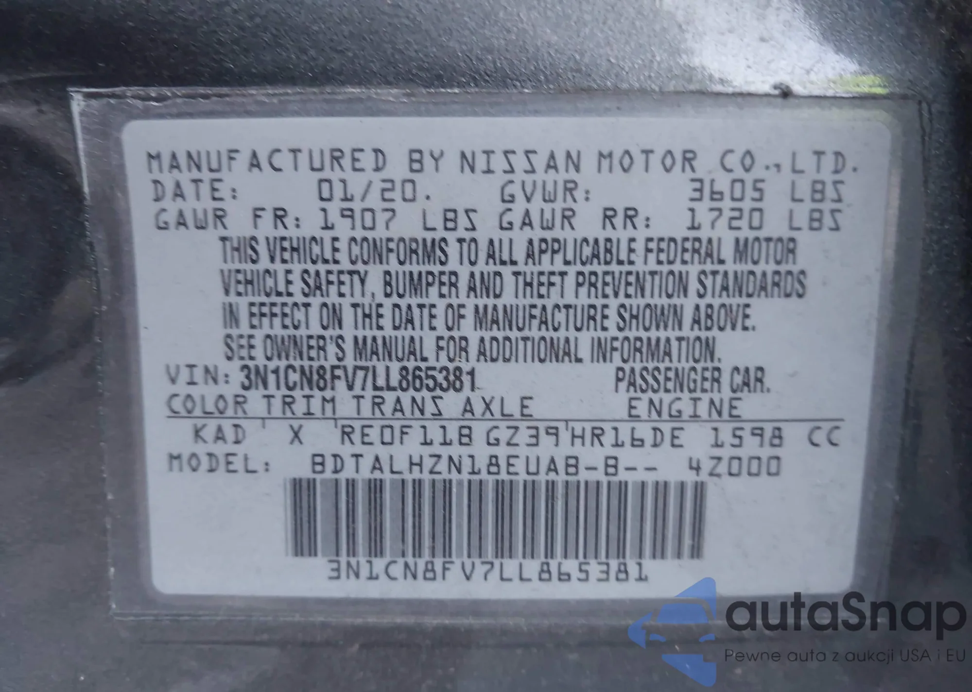 • VIN 3N1CN8FV7LL865381