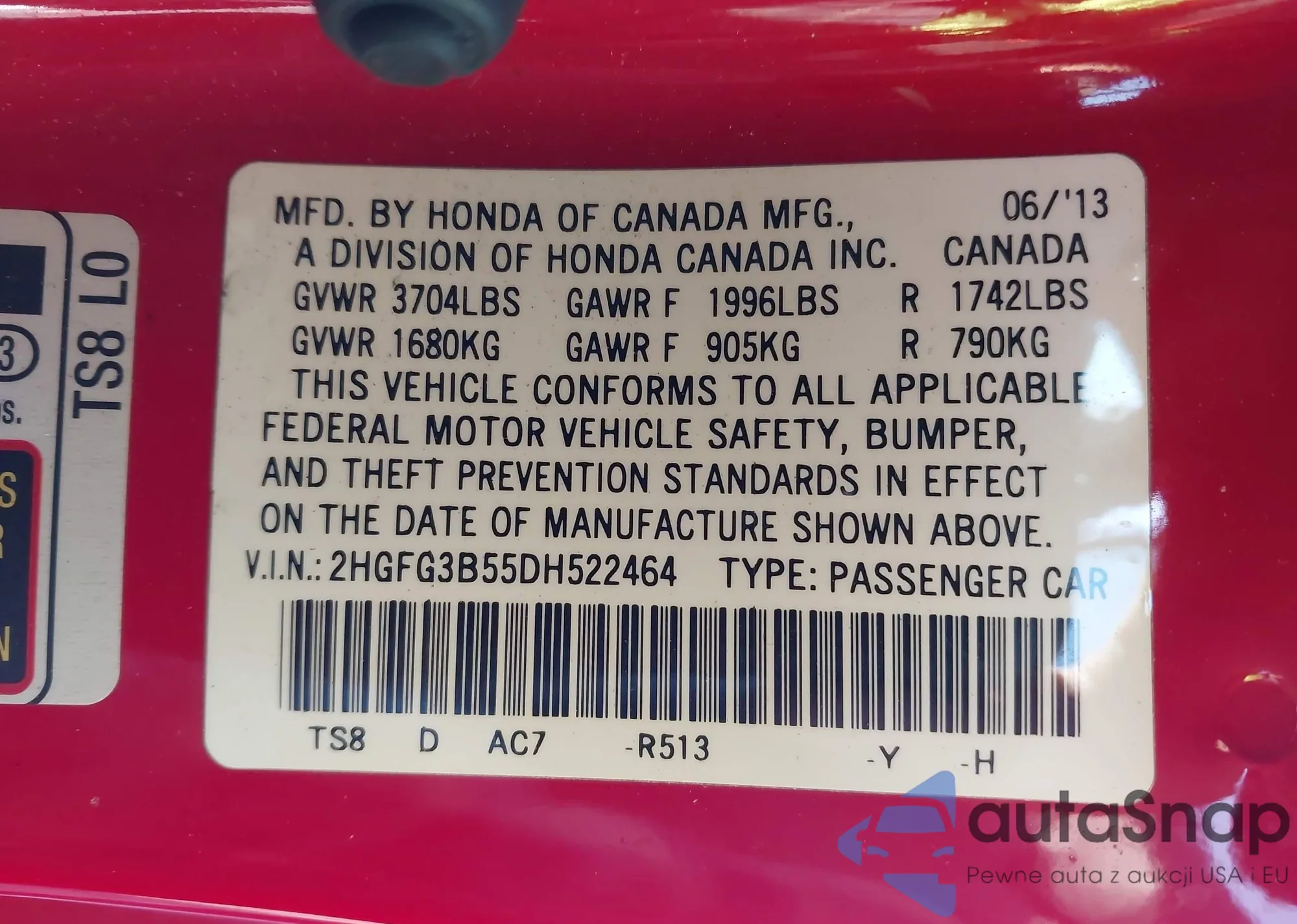 • VIN 2HGFG3B55DH522464