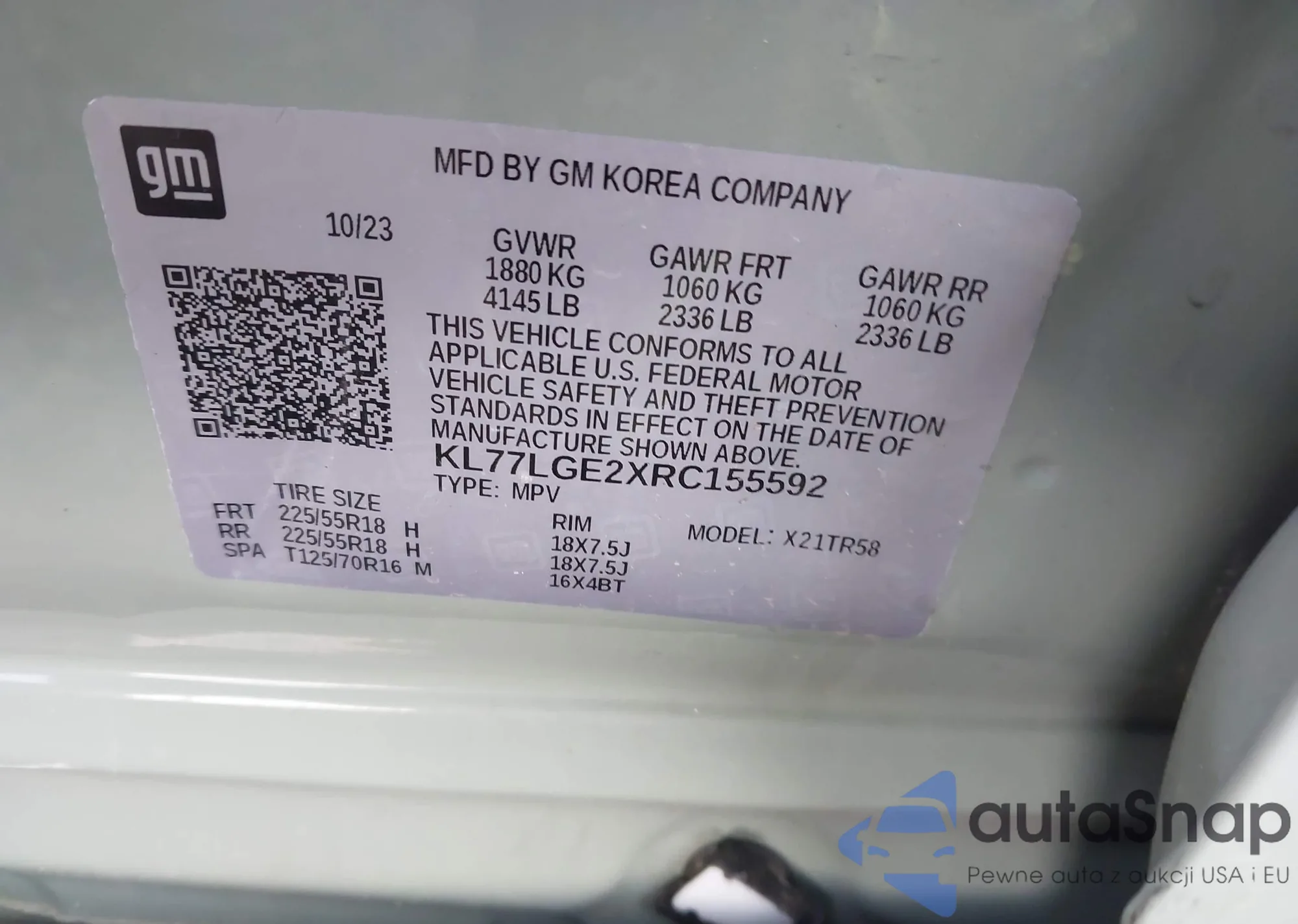 LOT: 43863391 VIN: 1G1ZK577594176638