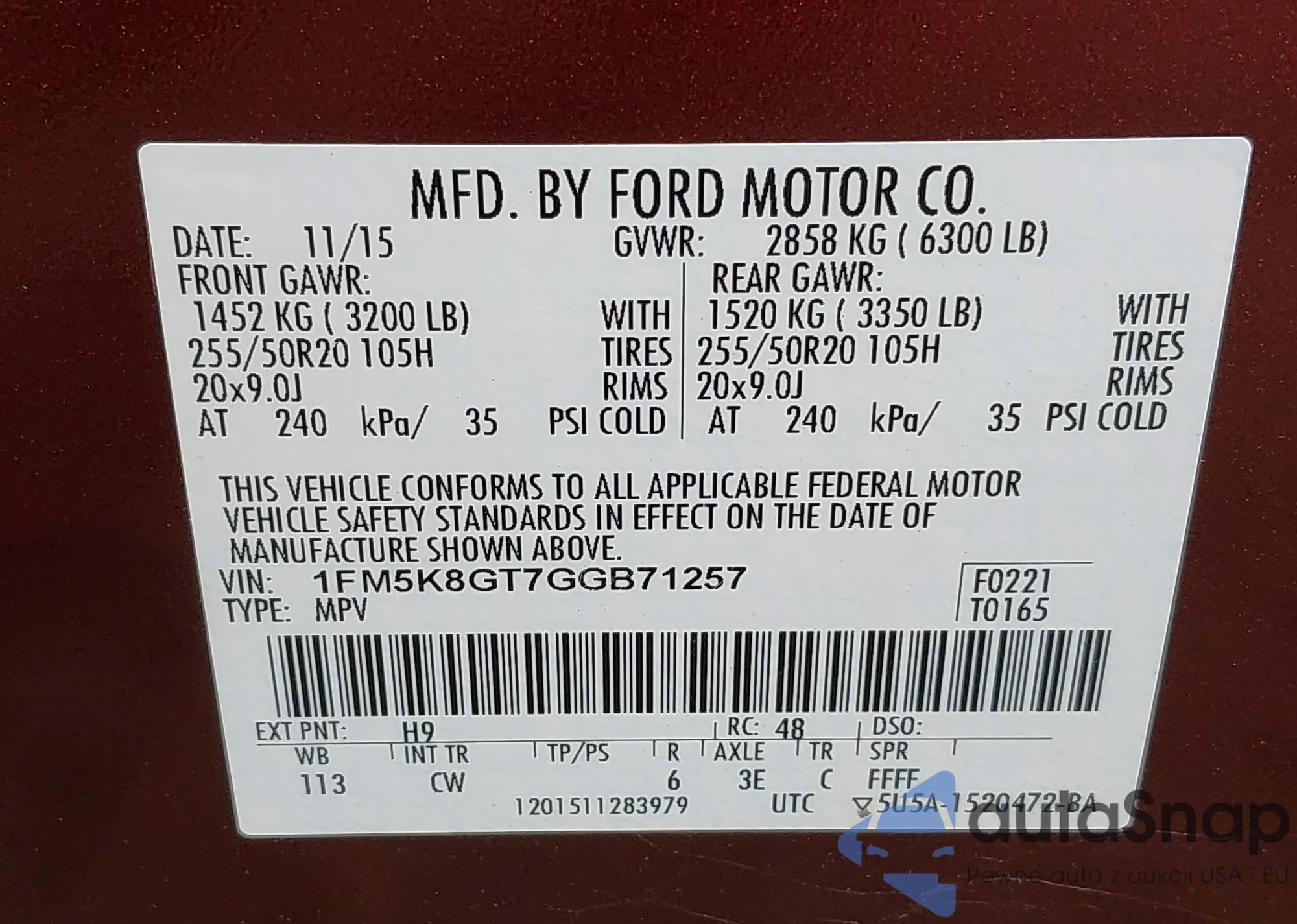 • VIN 1FM5K8GT7GGB71257