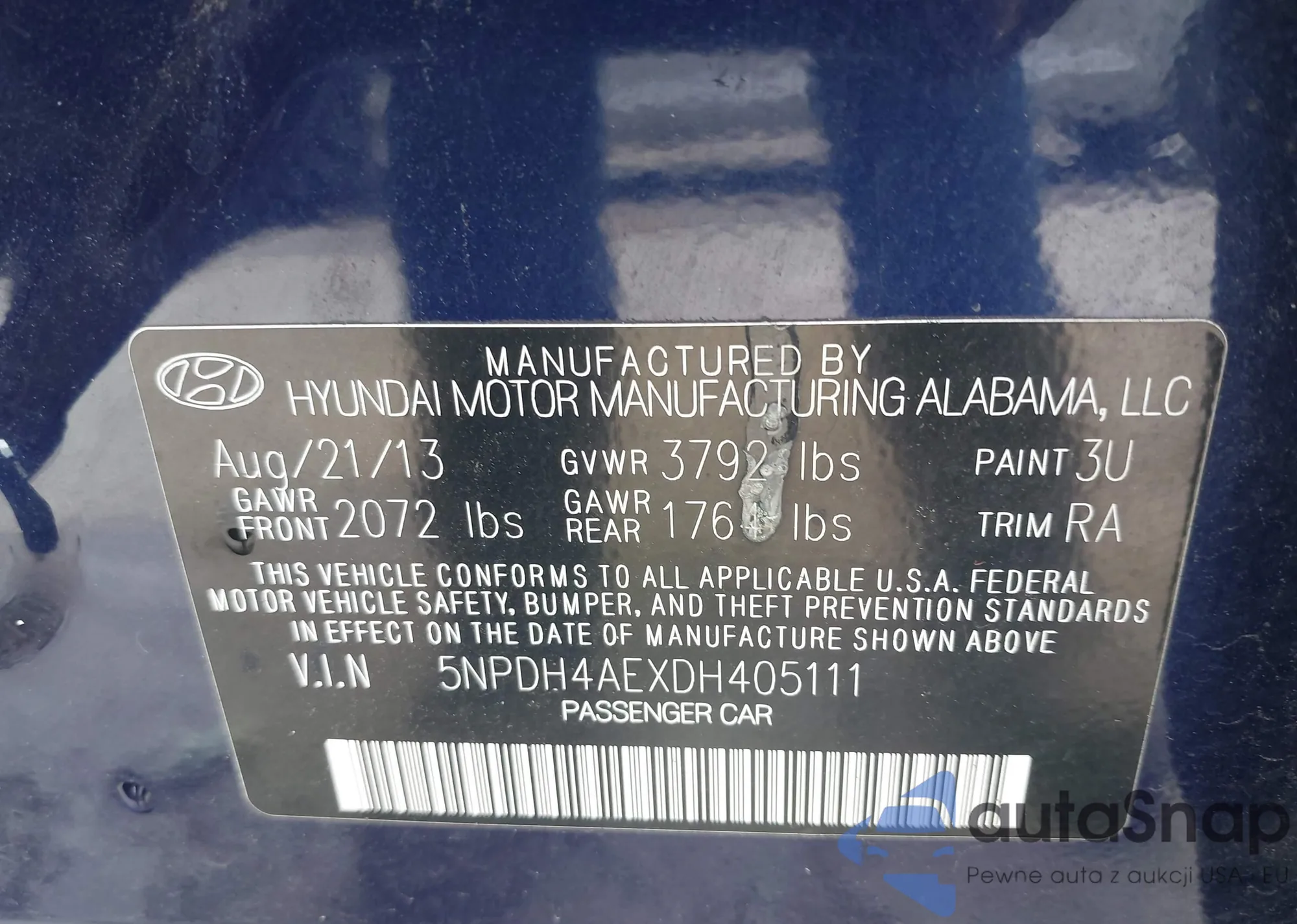 • VIN 5NPDH4AEXDH405111