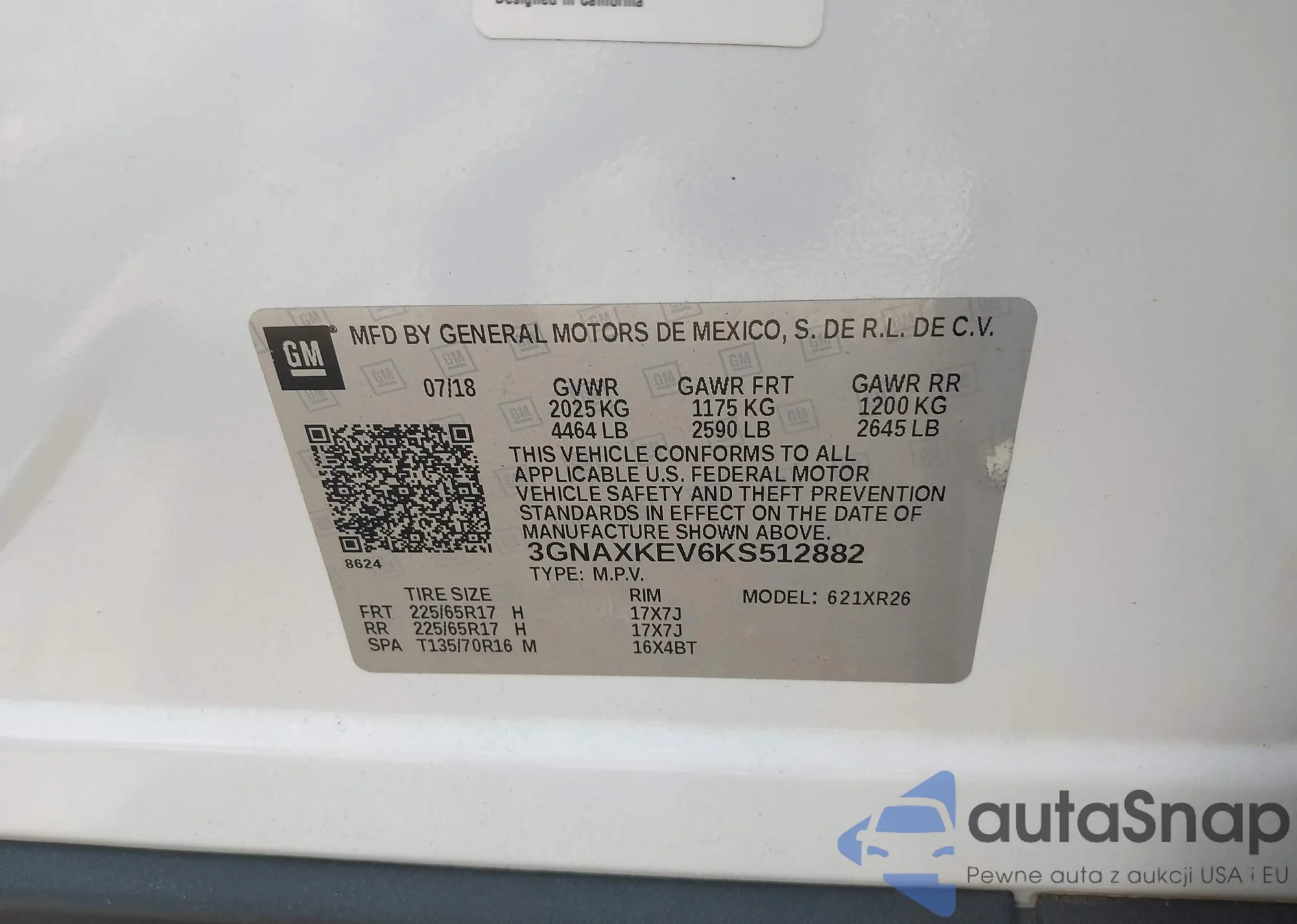 • VIN 3GNAXKEV6KS512882