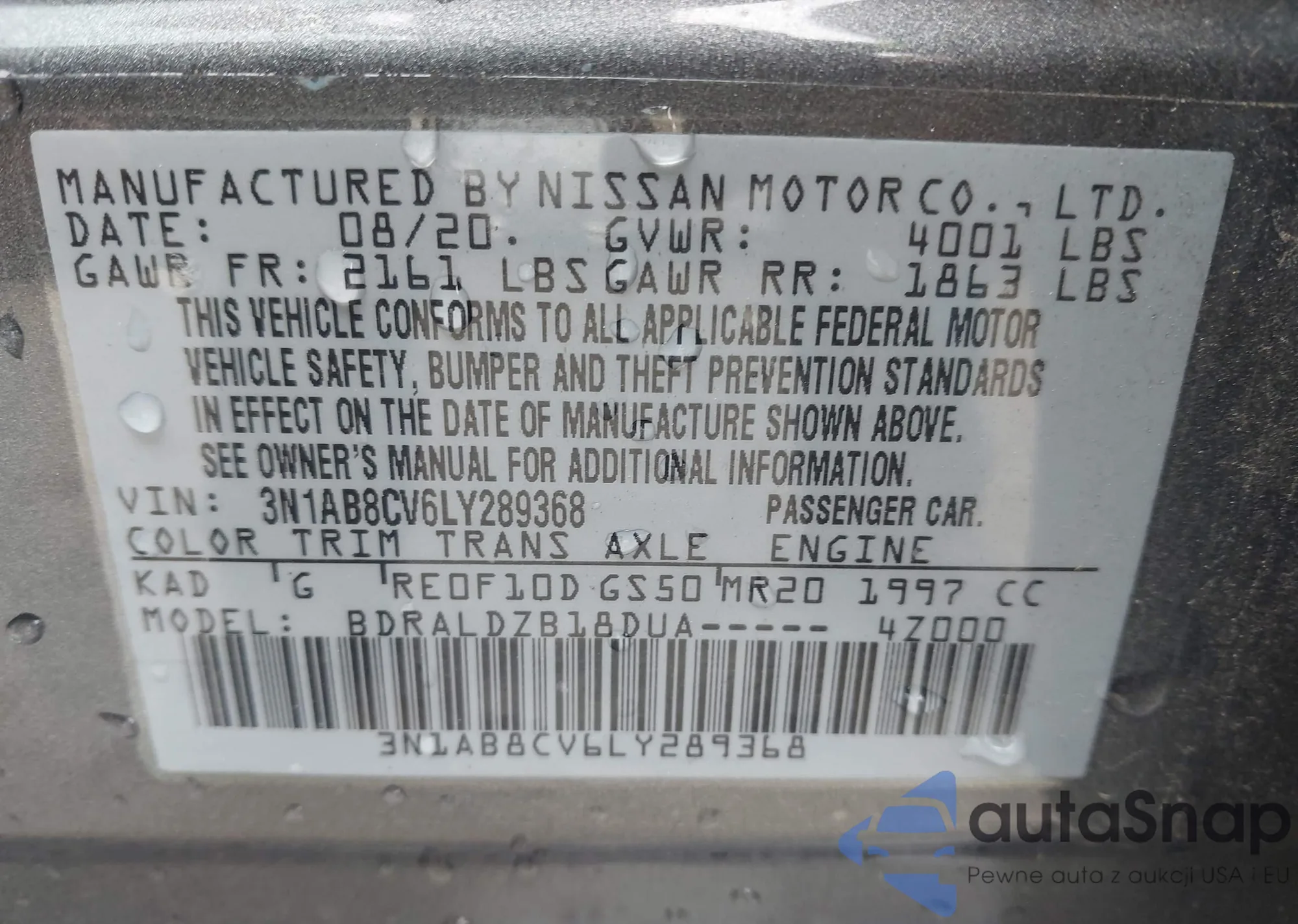 • VIN 3N1AB8CV6LY289368