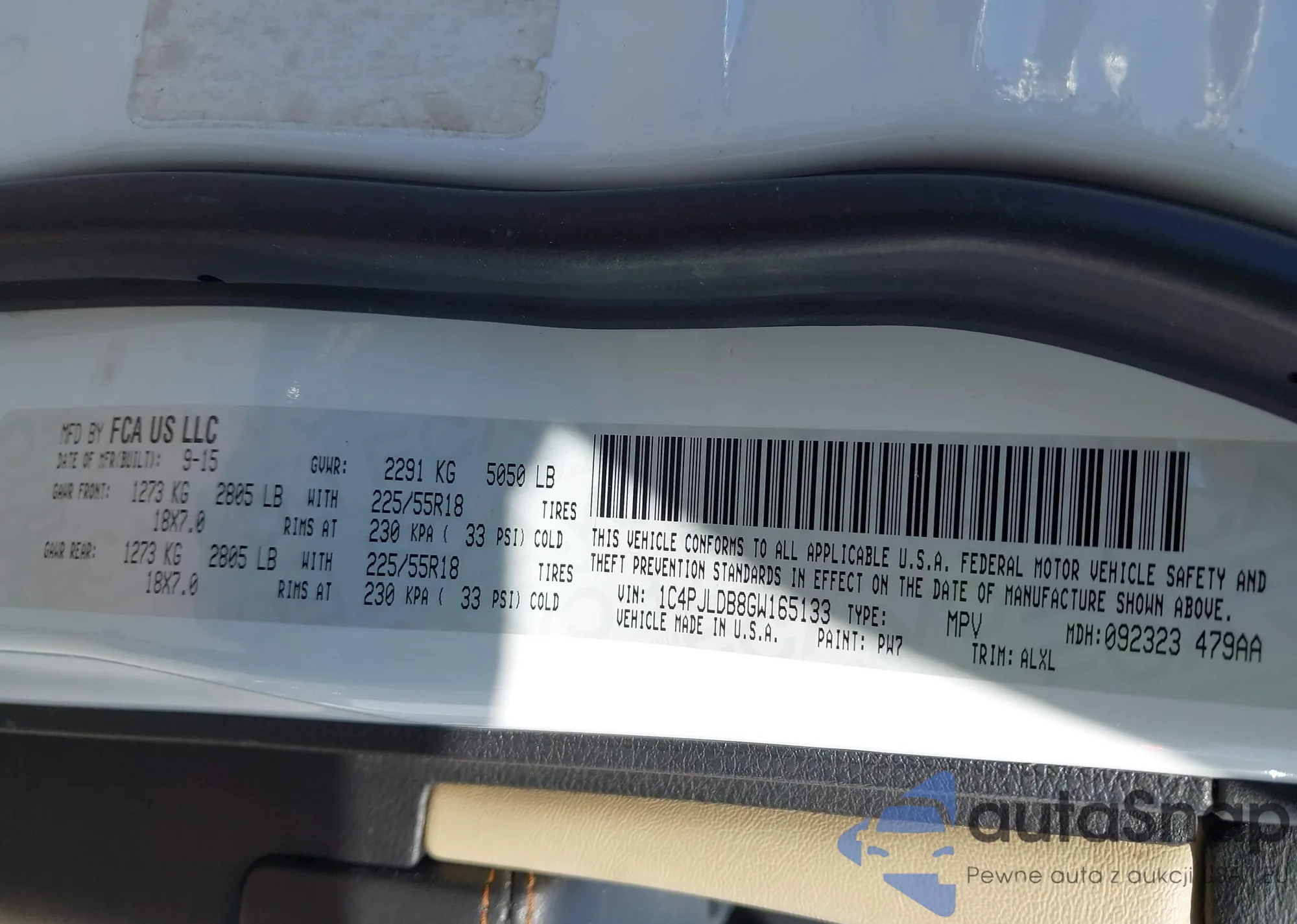 • VIN 1C4PJLDB8GW165133