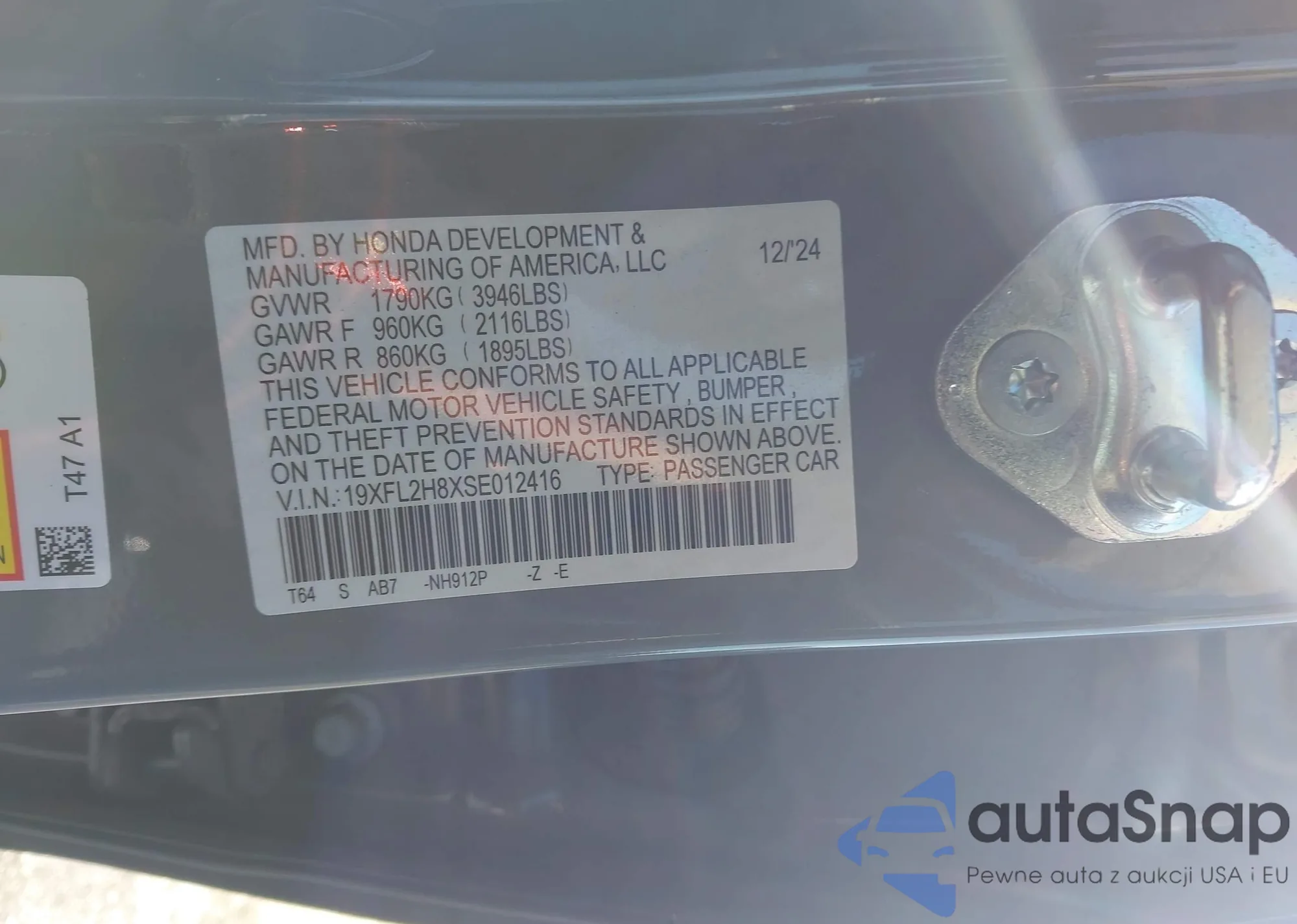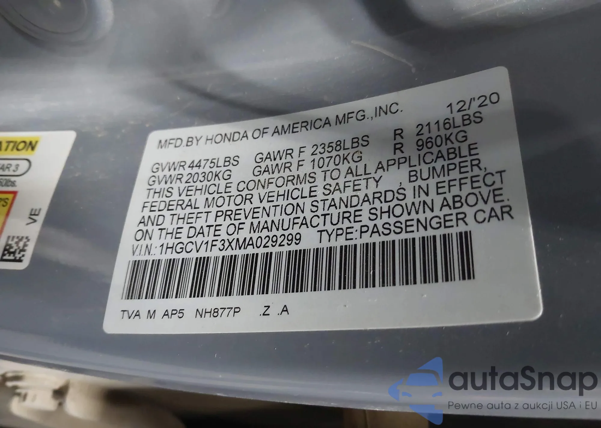 LOT: 43592252 VIN: 1HGCP2F81CA121721