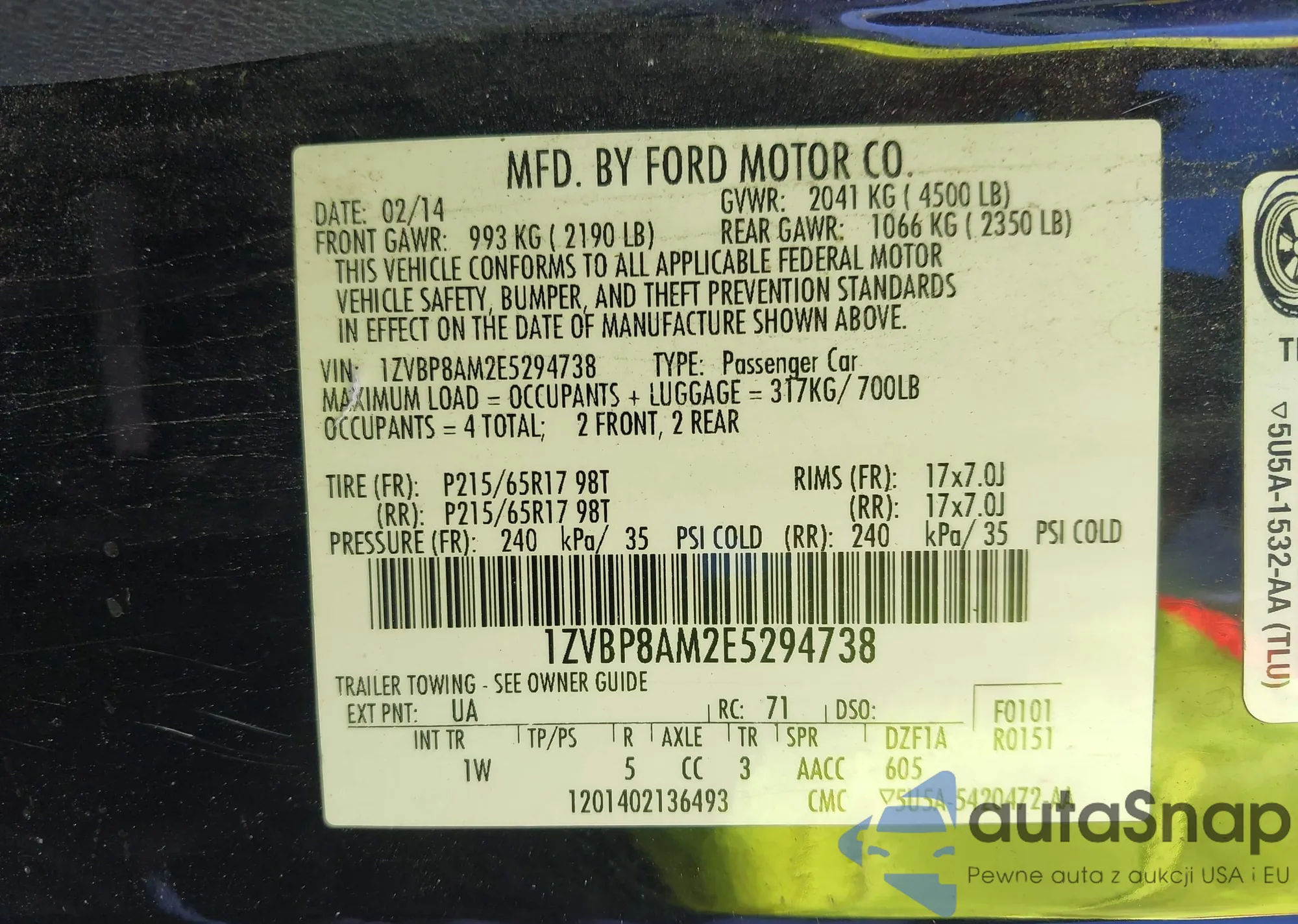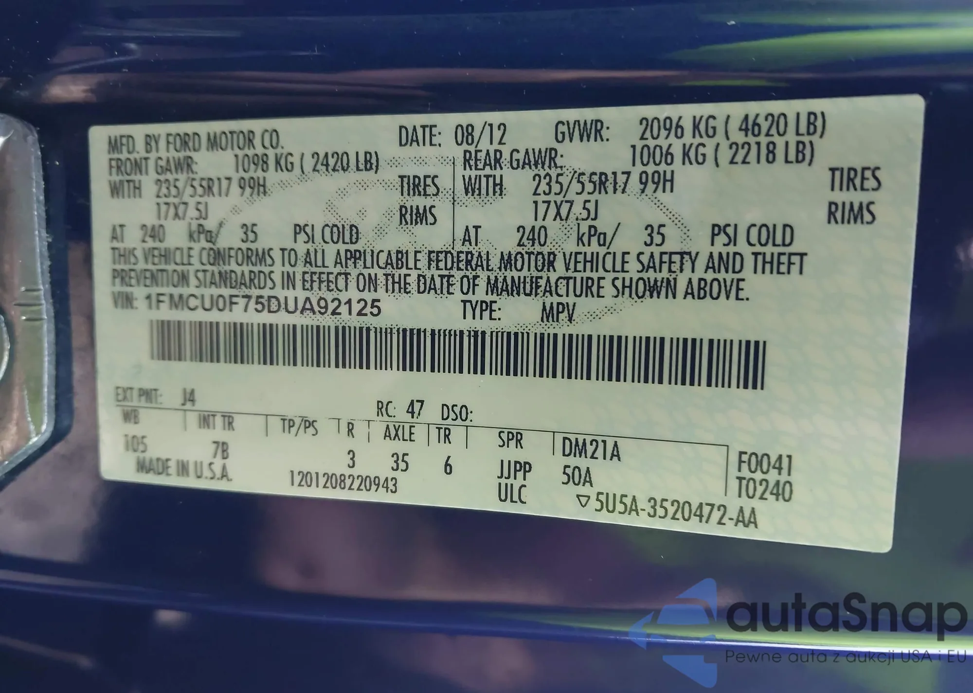 • VIN 1FMCU0F75DUA92125