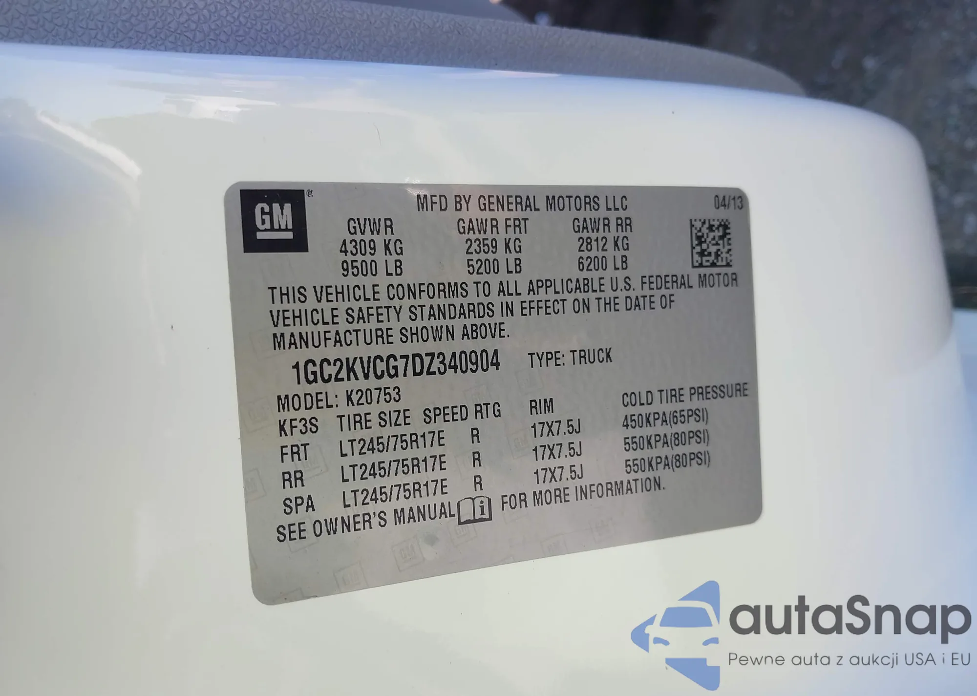 • VIN 1GC2KVCG7DZ340904