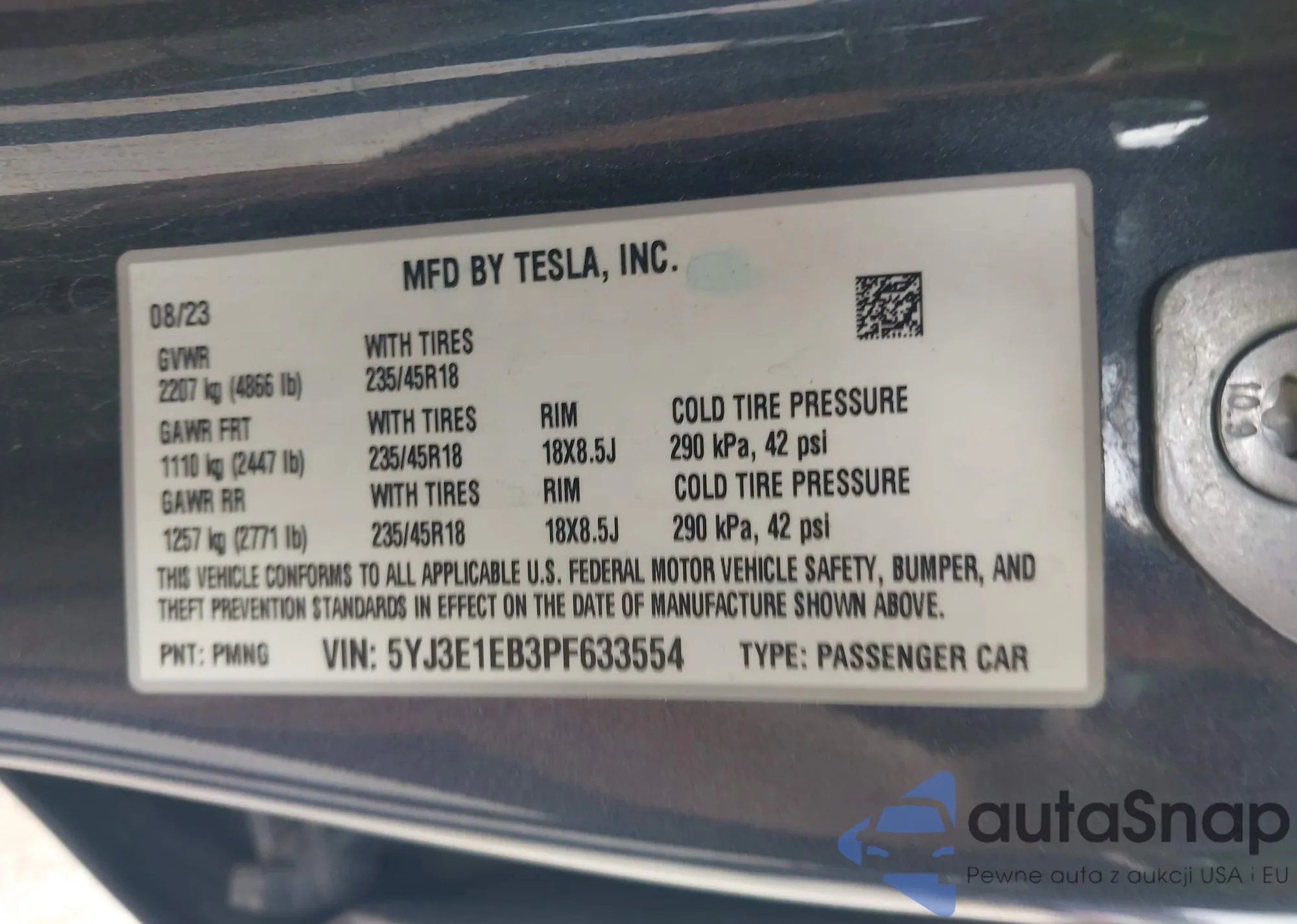 • VIN 5YJ3E1EB3PF633554