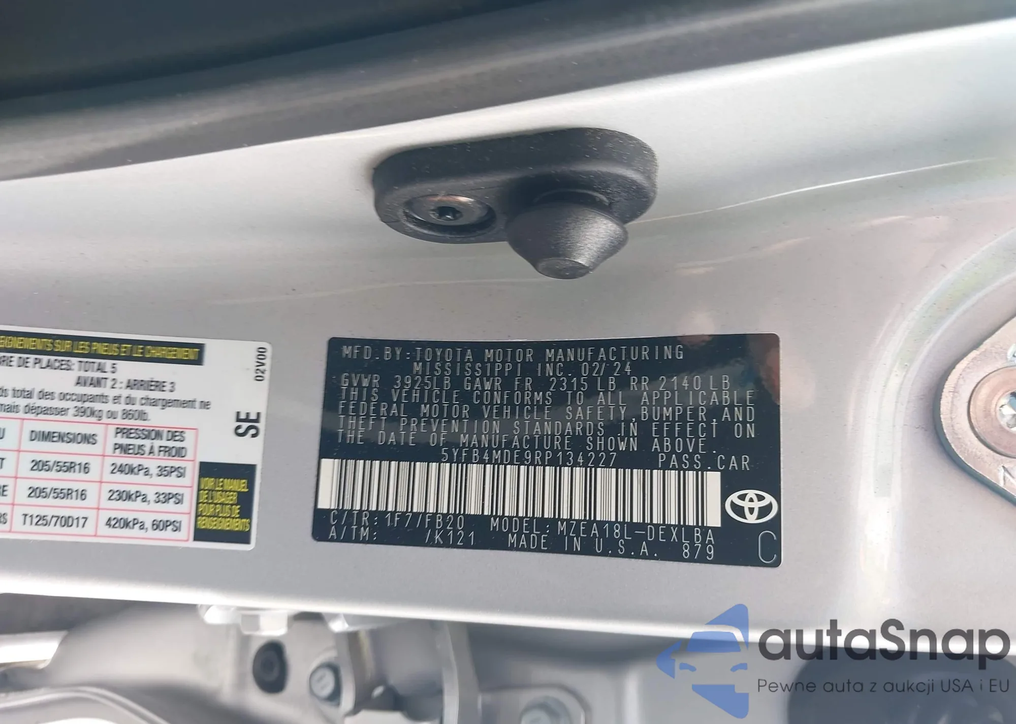 • VIN 5YFB4MDE9RP134227