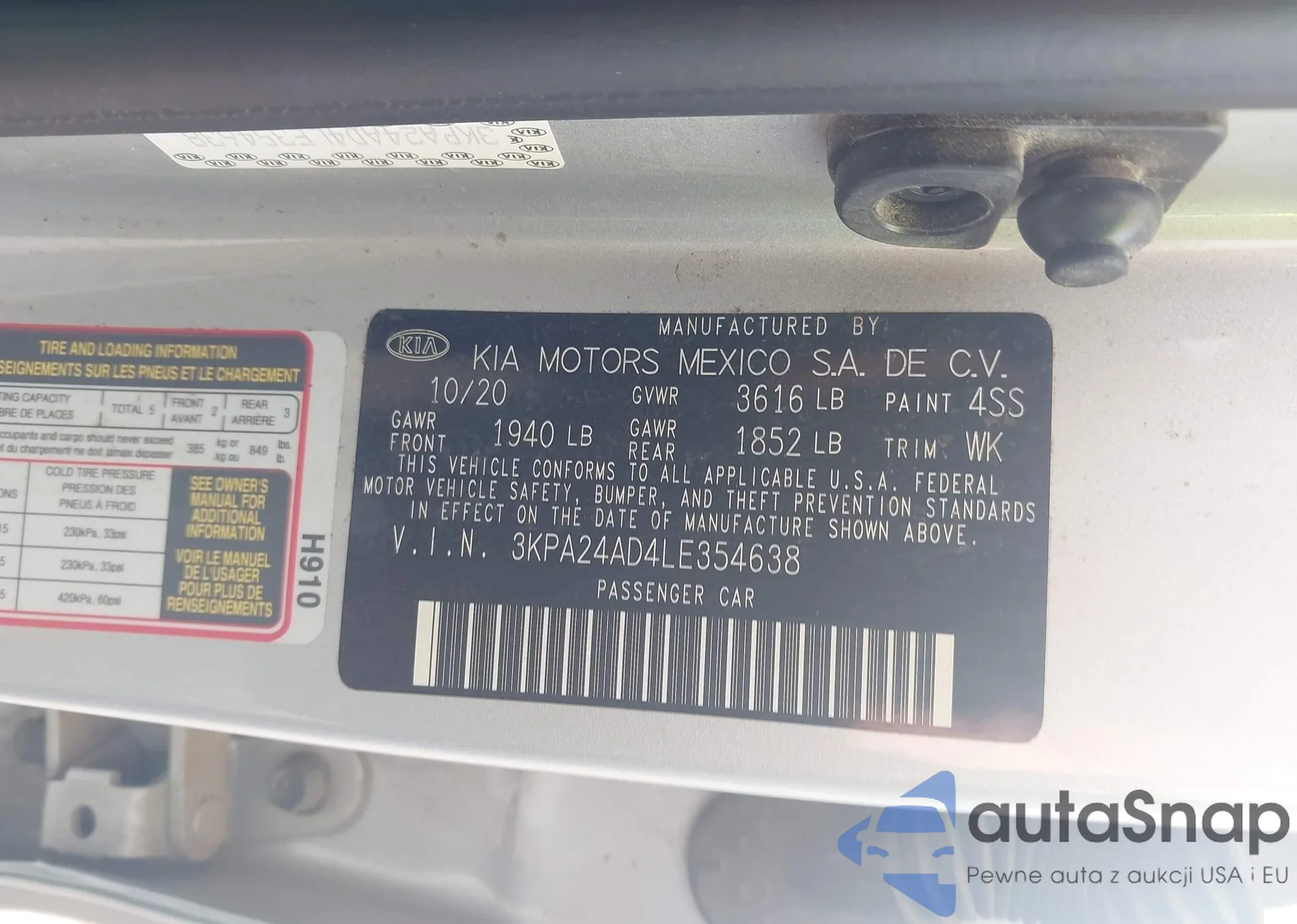 • VIN 3KPA24AD4LE354638