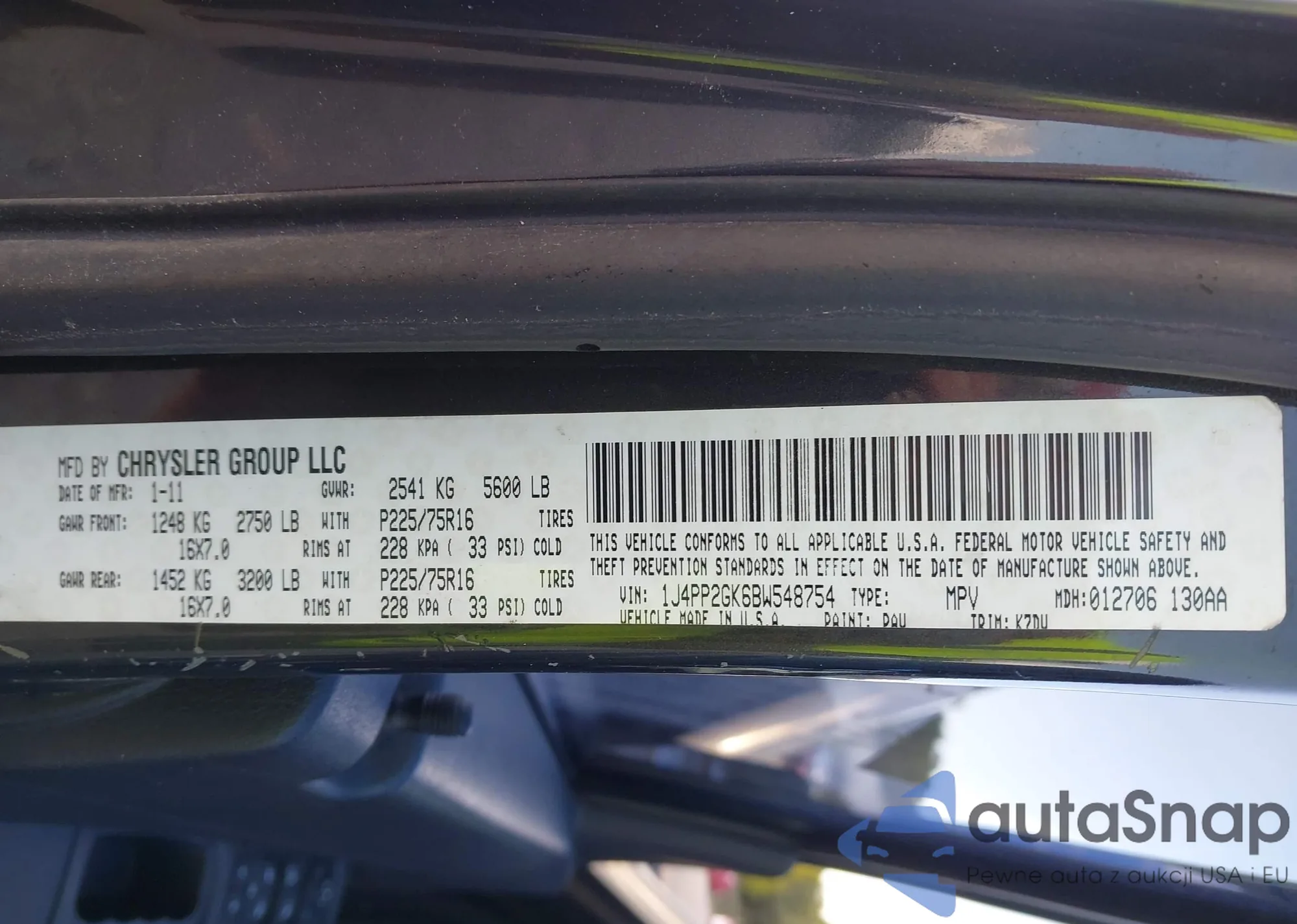 • VIN JN8AS5MV6DW635698