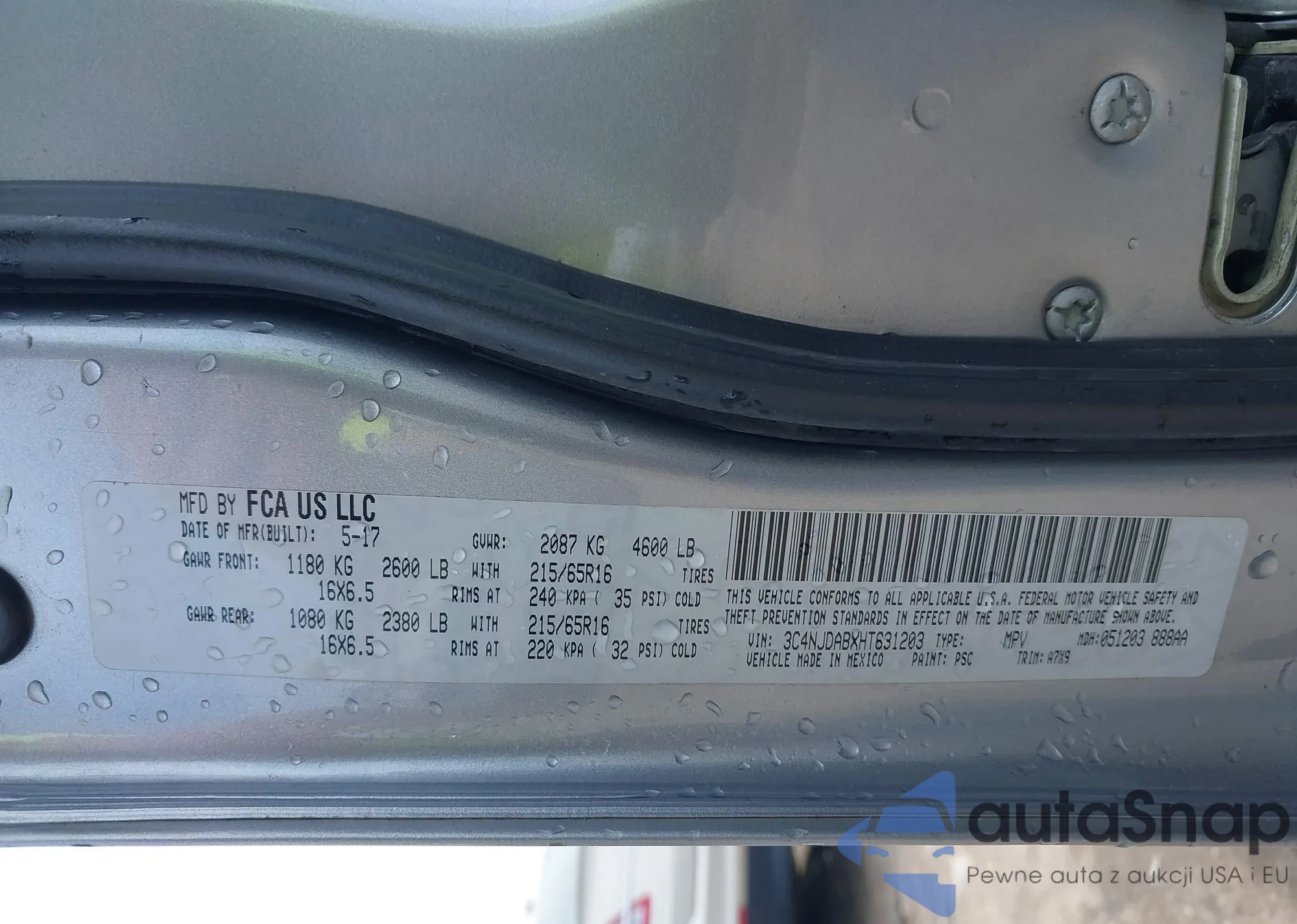 • VIN 3C4NJDABXHT631203