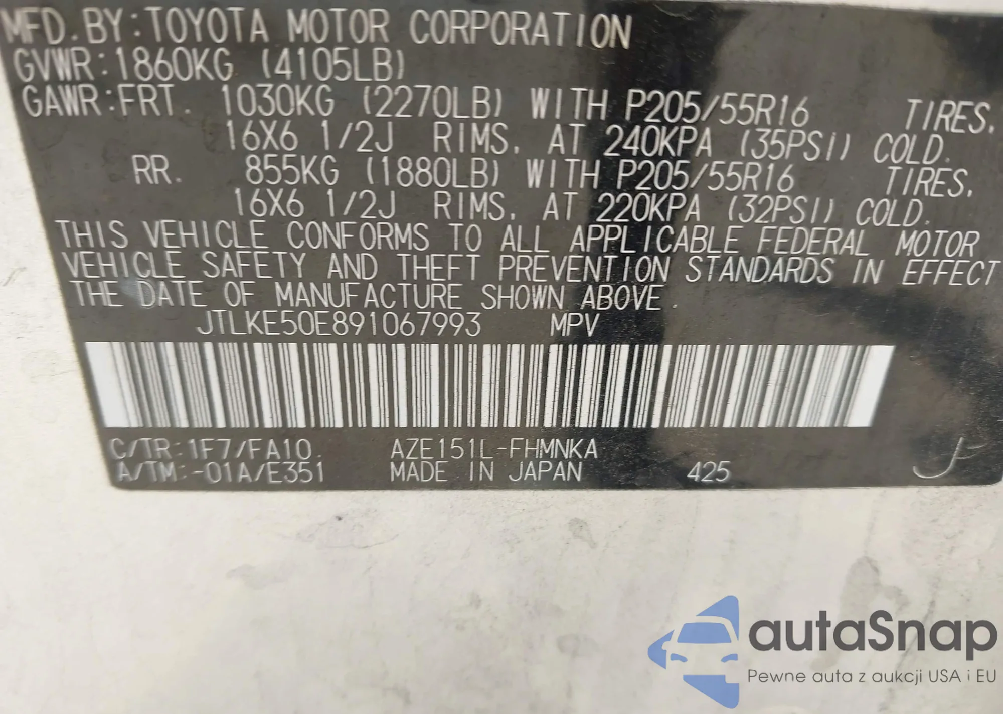 • VIN 2HGFG4A59DH703476